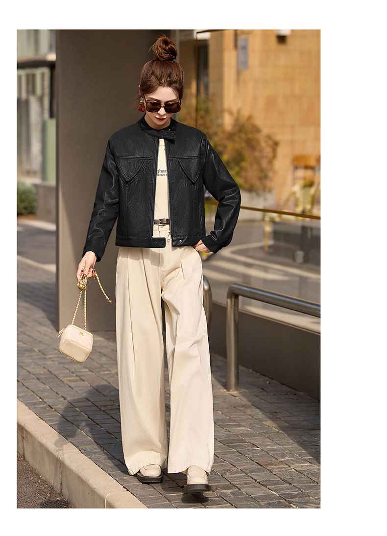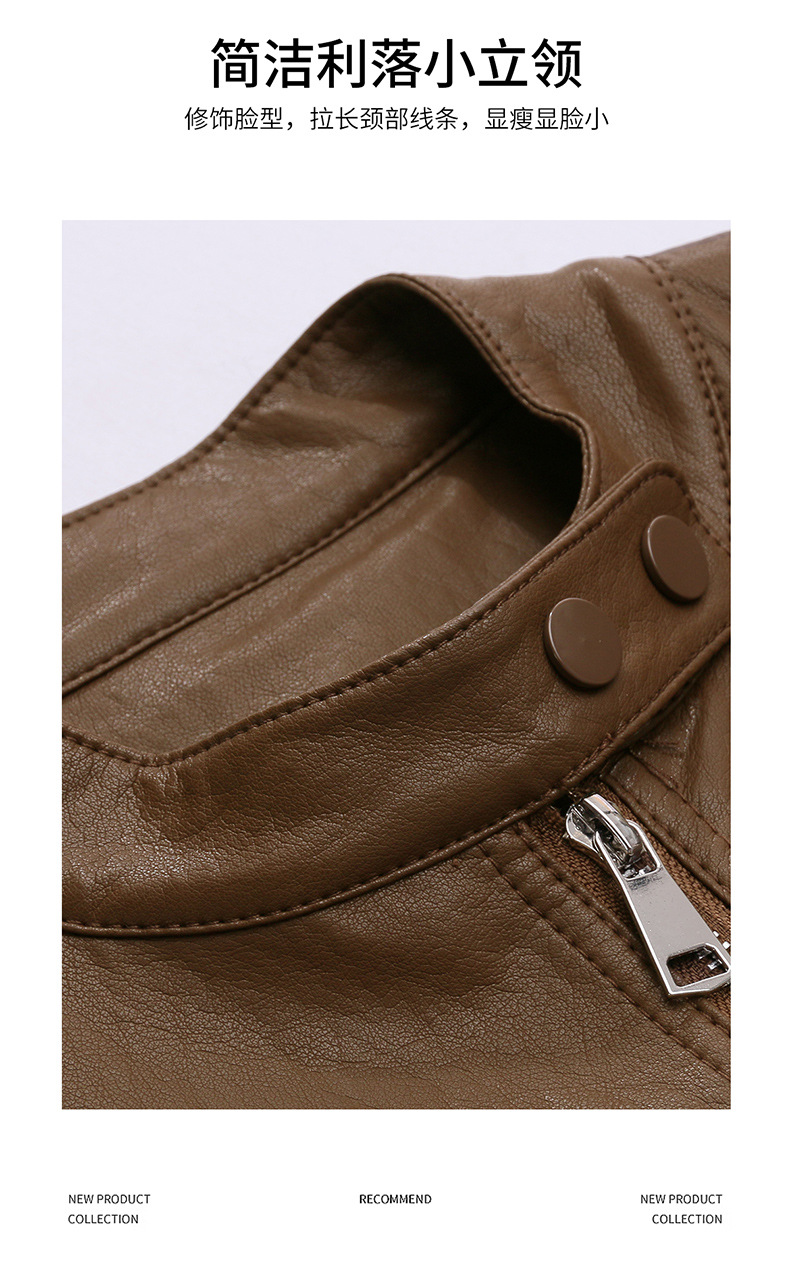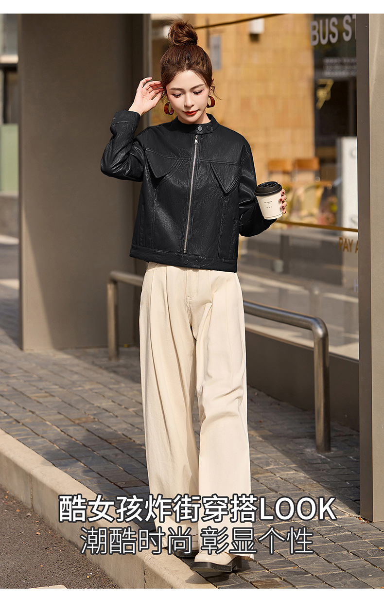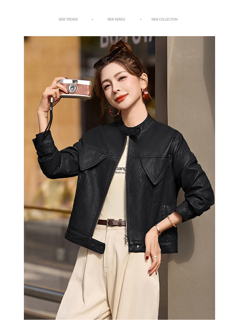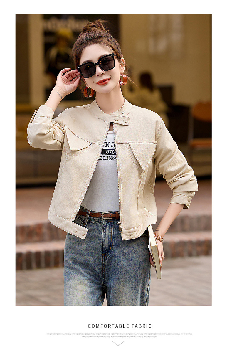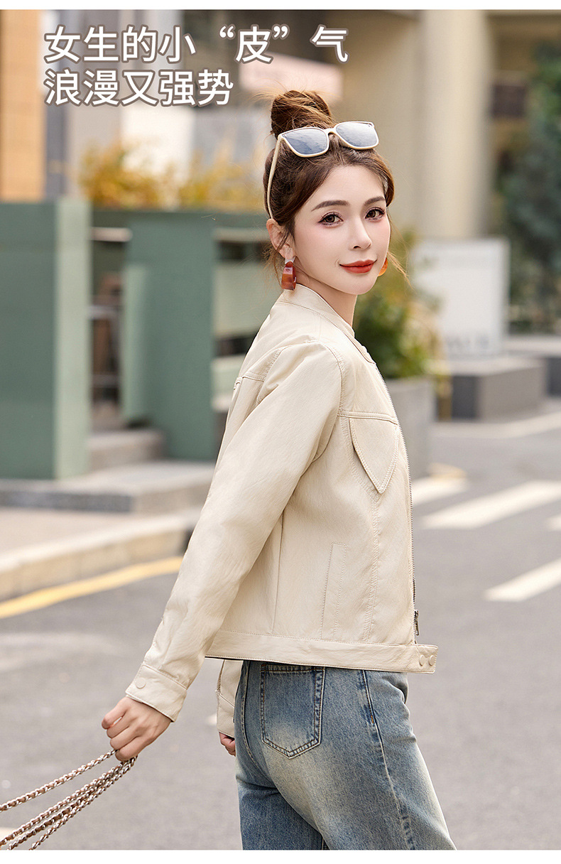 女性の皮の服の2025春の新型の婦人服の立襟のファッション的な洋風pu皮のジャケットのショートコートXG9965