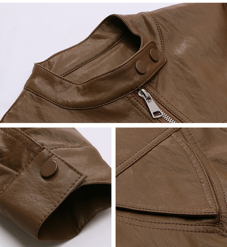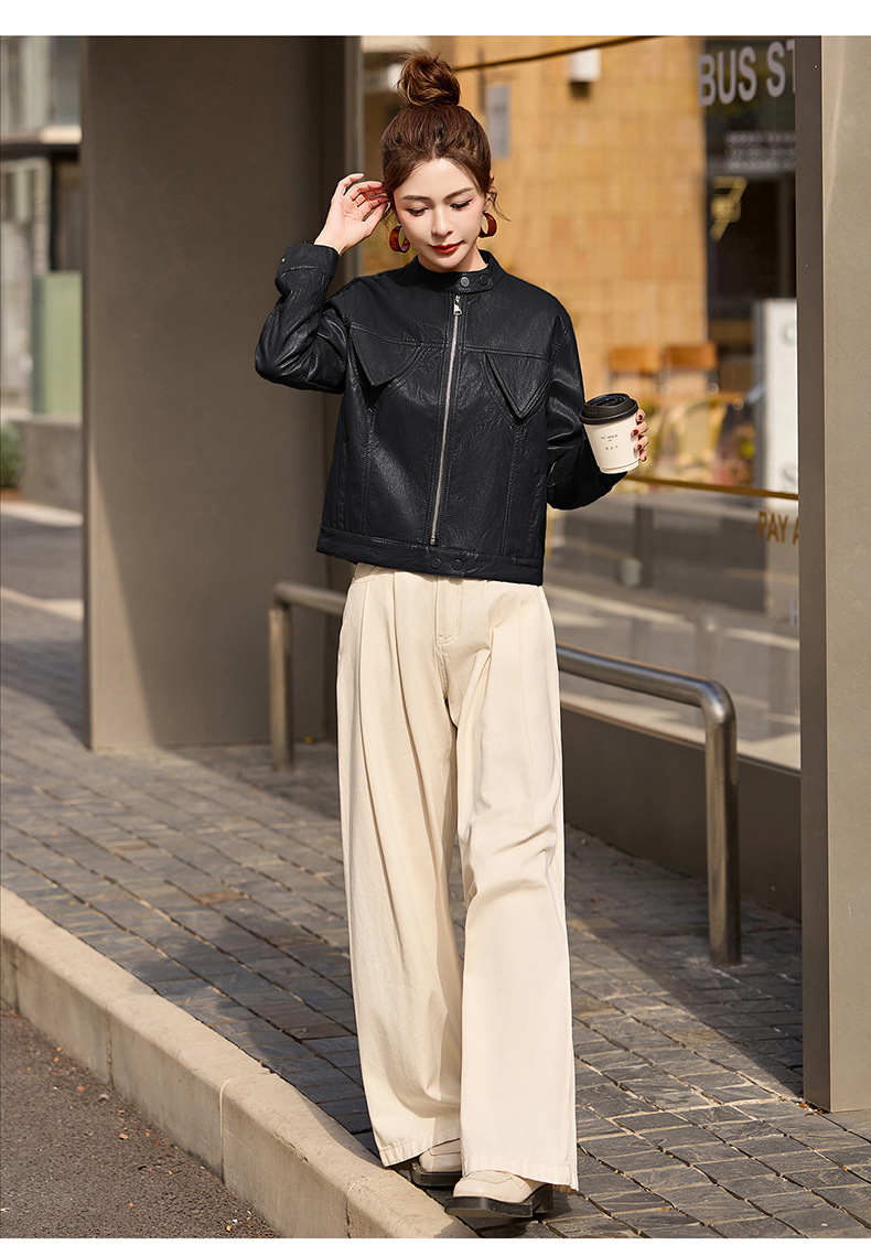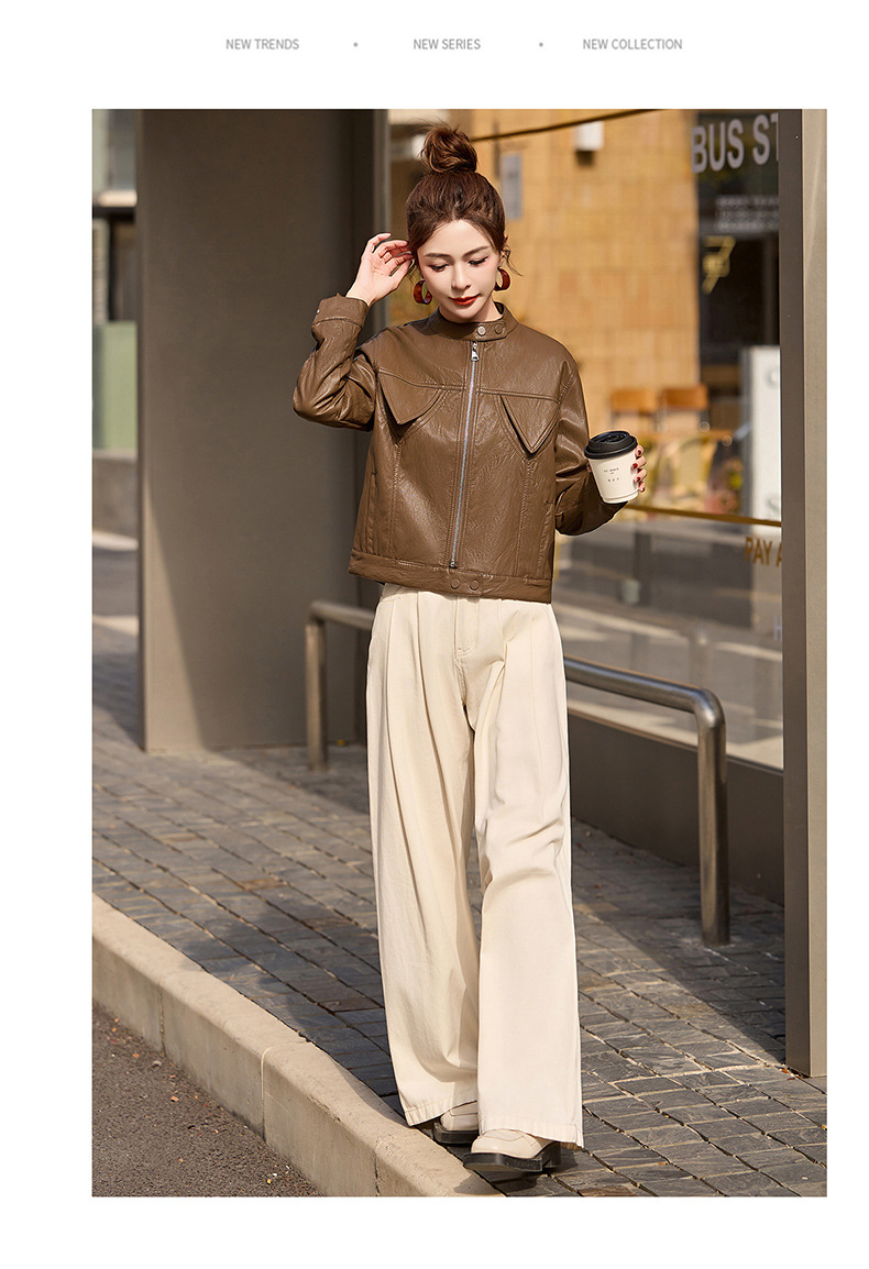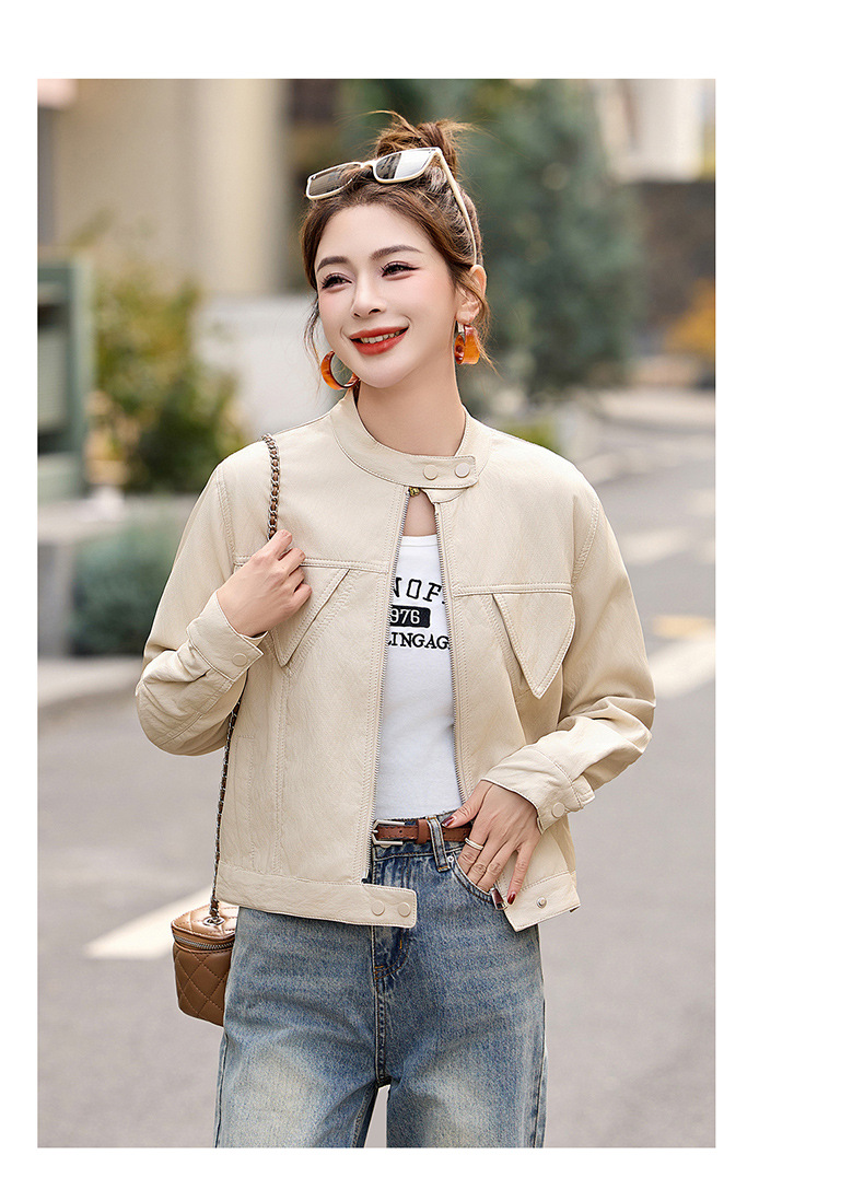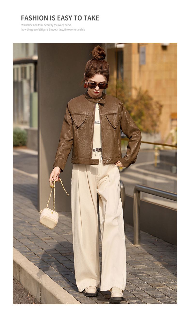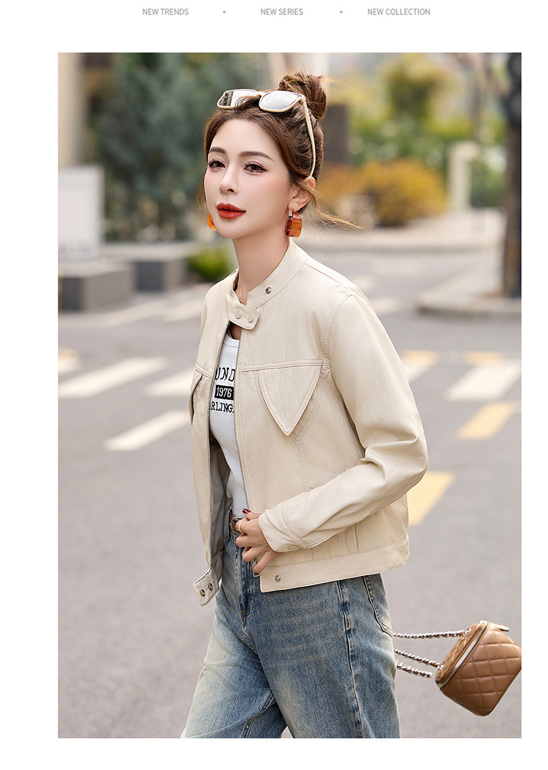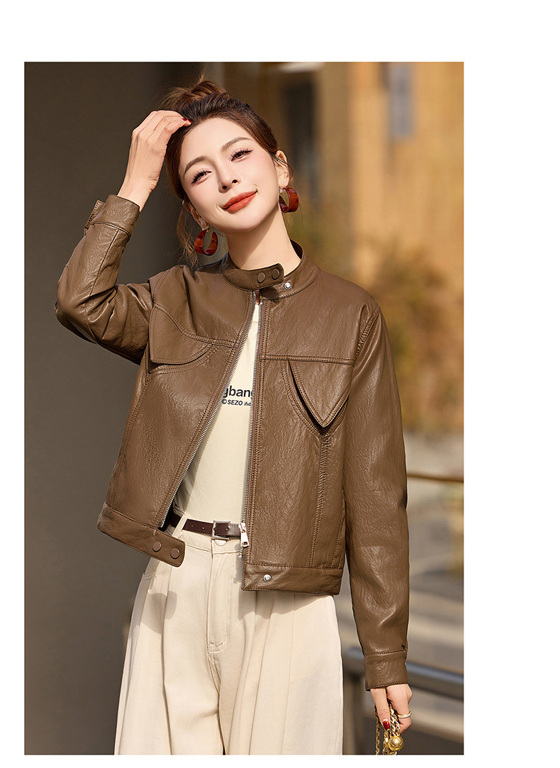 女性の皮の服の2025春の新型の婦人服の立襟のファッション的な洋風pu皮のジャケットのショートコートXG9965