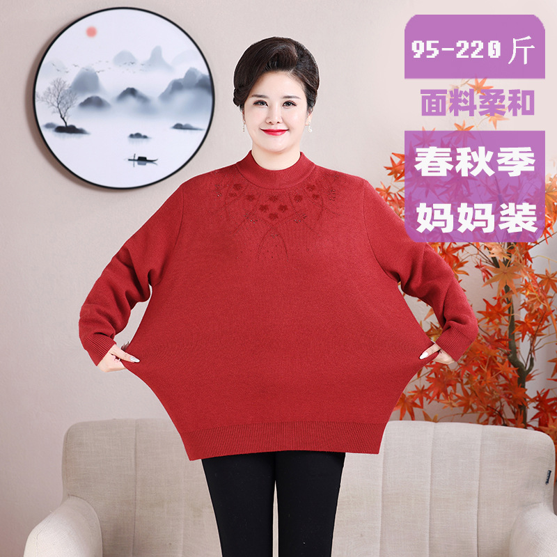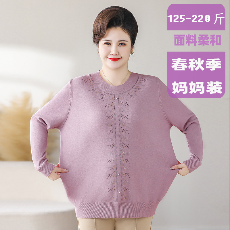 お母さんの服ゆったりとした大きいサイズのラウンドネックセーター中高年女性の新しいスタイル 110kg ゆったりとしたニットベースシャツ