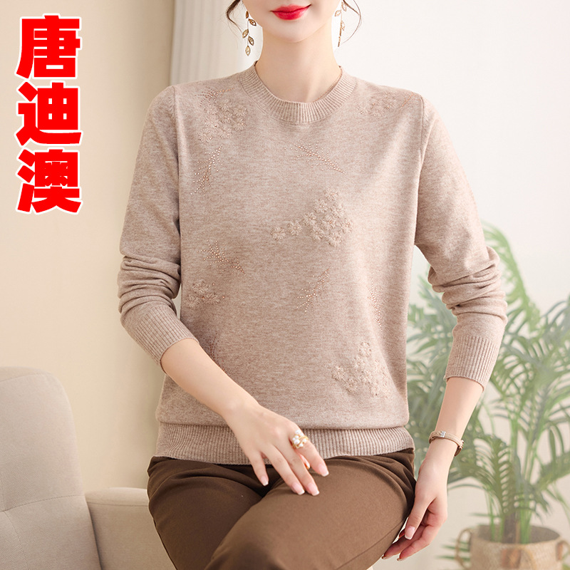 洋气妈妈新款老太太内搭秋冬女装毛衣中老年休闲圆领针织衫上衣