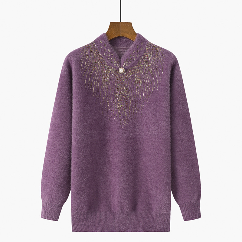 中高年のお母さんはチャイナドレスの襟を厚くしてミンクの毛のセーターの中年の婦人服のプルオーバーのファッションのゆったりしたニットの上着に似せます。