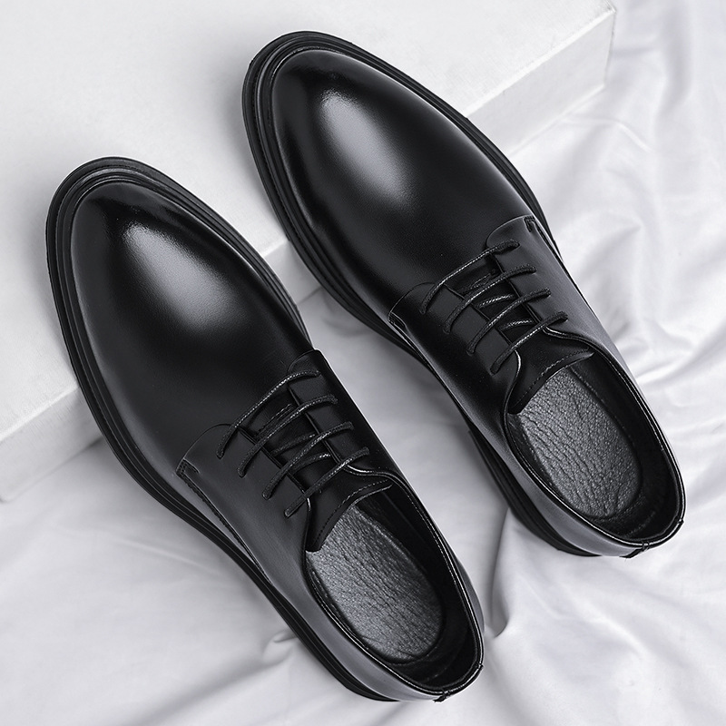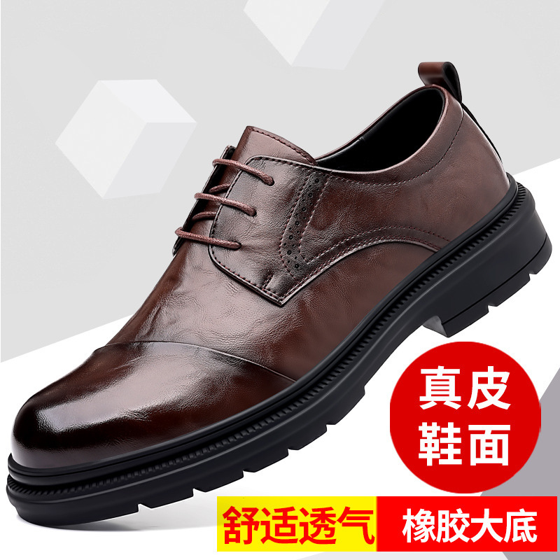 中年男性カジュアル靴2025春の新型真皮通気性ひも付き男性靴ビジネスは厚い底の靴を履いている