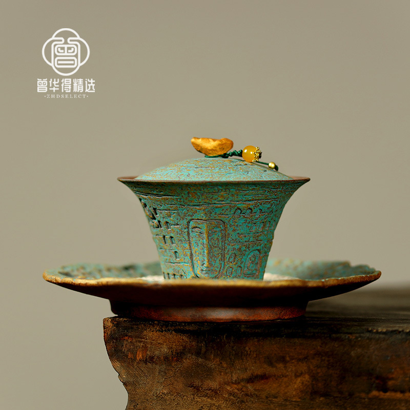 曾華得手作三才蓋碗茶杯敦煌創意工夫茶わんを入れます。