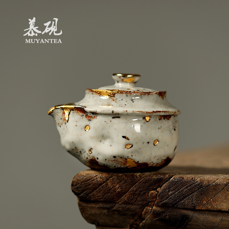 慕砚日本式志野焼急須高越手作描24k金宝瓶手掴み壺創意工夫茶道具蓋碗