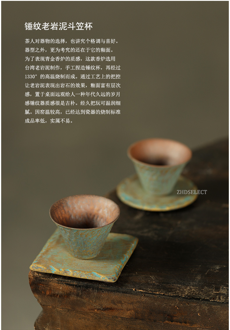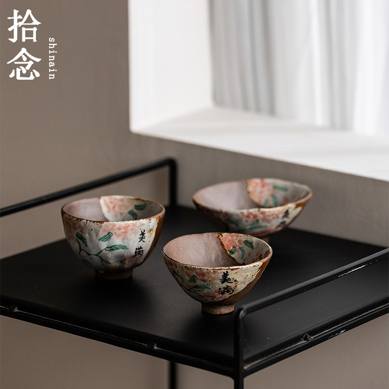 素影手描き老岩泥茶杯復古粗陶品茗杯柴焼工夫茶具創意日本式主人杯