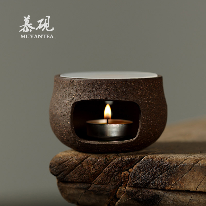 慕砚日本式寂風温茶器手作粗陶ろうそく台煮茶炉加熱台座花茶温酒炉