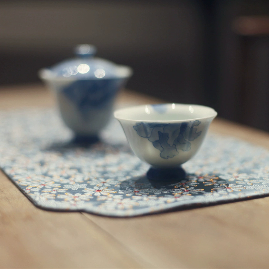 青牡丹執夢主人杯品茗杯杯釉薬下彩手描き景徳鎮陶磁器茶器