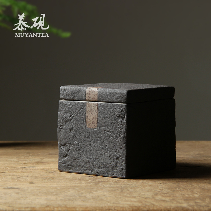 慕陶日本式角箱茶葉缶復古粗陶非密封覚醒茶缶茶道工夫茶器シンプル茶倉