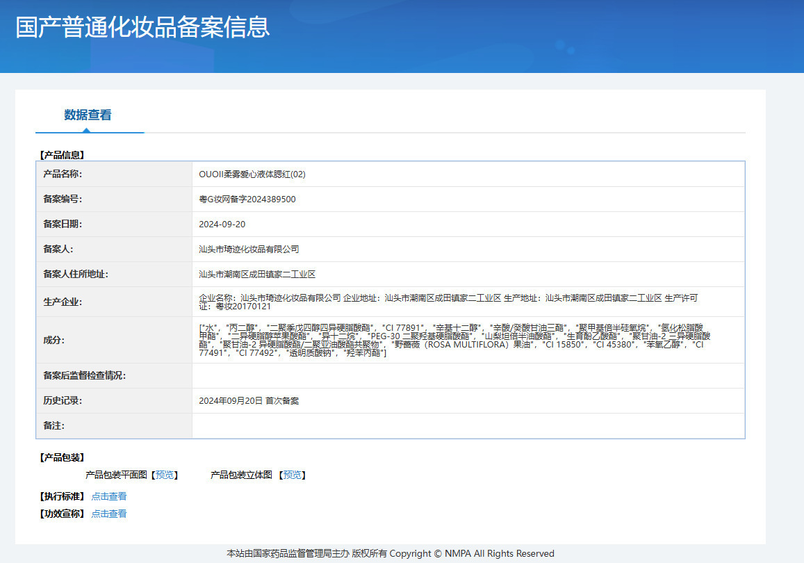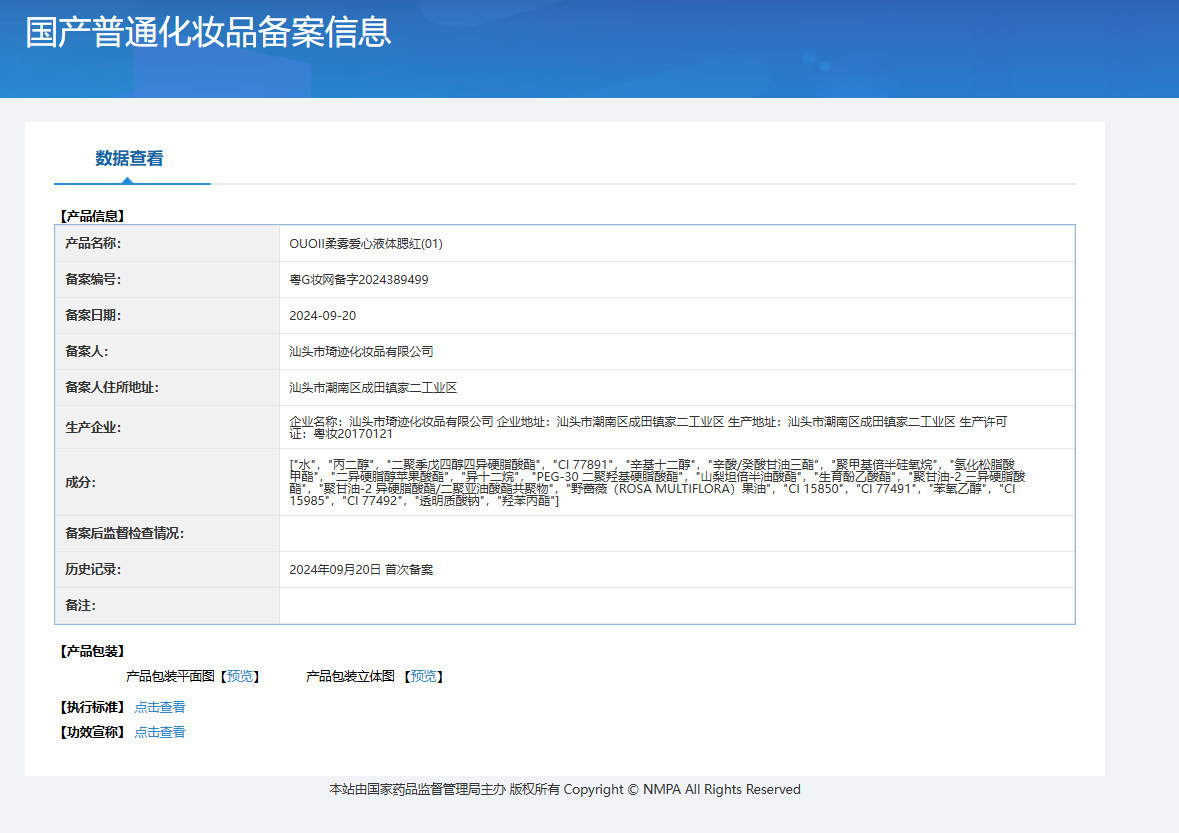 特殊化粧品登録証番号 広東省Gメイクアップネットワーク準備番号2024389499
