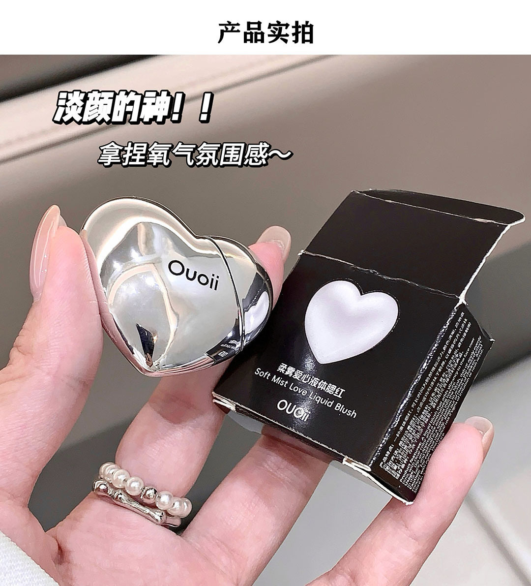 OUOII柔らかい霧の愛の液体の頬紅の低い飽和の膨張の収縮の色の韓系の偽の素顔は白い紅を現します。