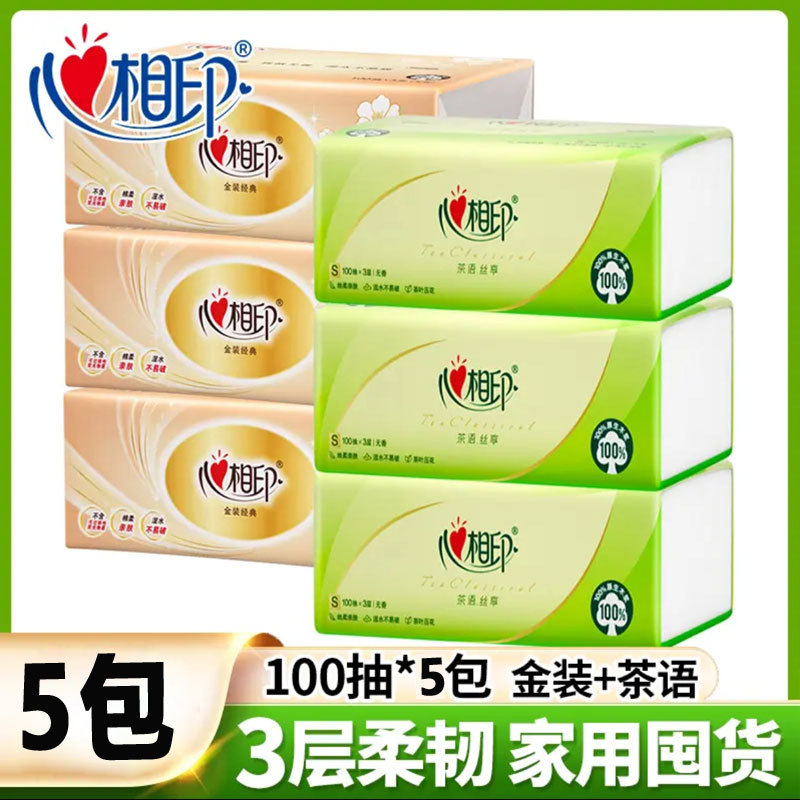 心相印茶语丝享3层100抽家用面巾纸巾餐巾纸商用卫生纸巾批发代发
