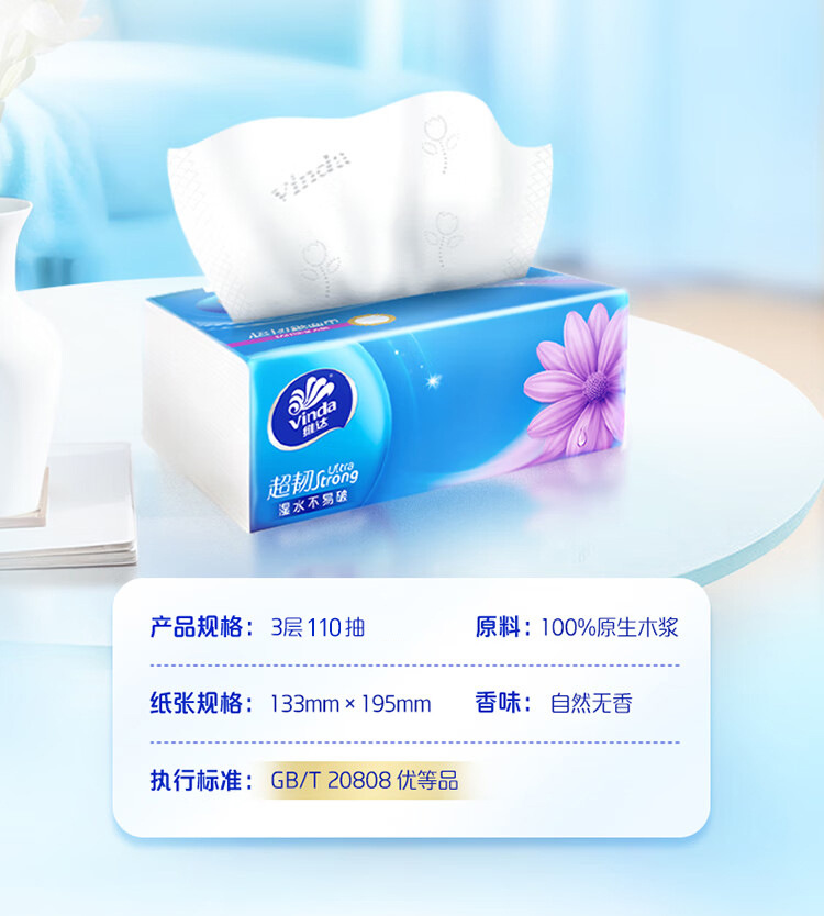 【新人专享0.01元】维达超韧抽纸100抽3包餐巾纸面巾卫生纸巾抽纸