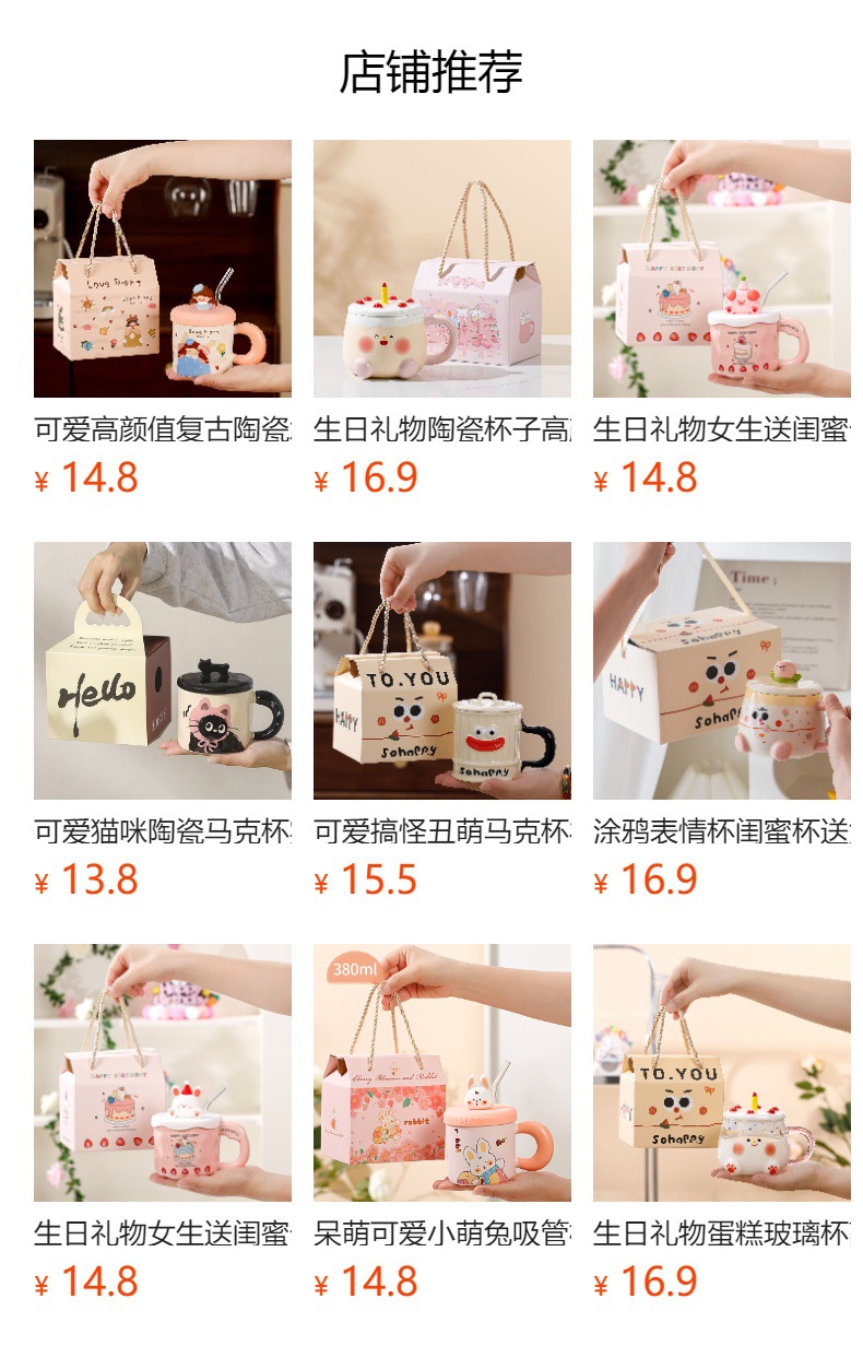 新款圣诞礼物陶瓷杯带盖公仔情侣马克杯高颜值大容量水杯套装杯子