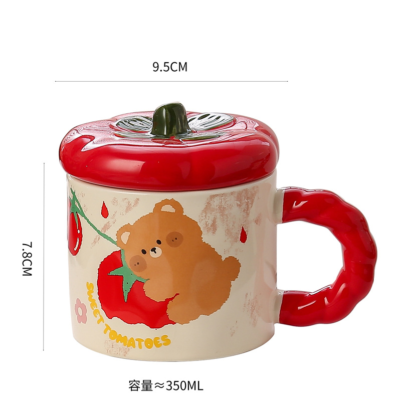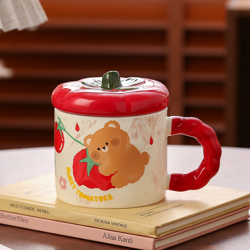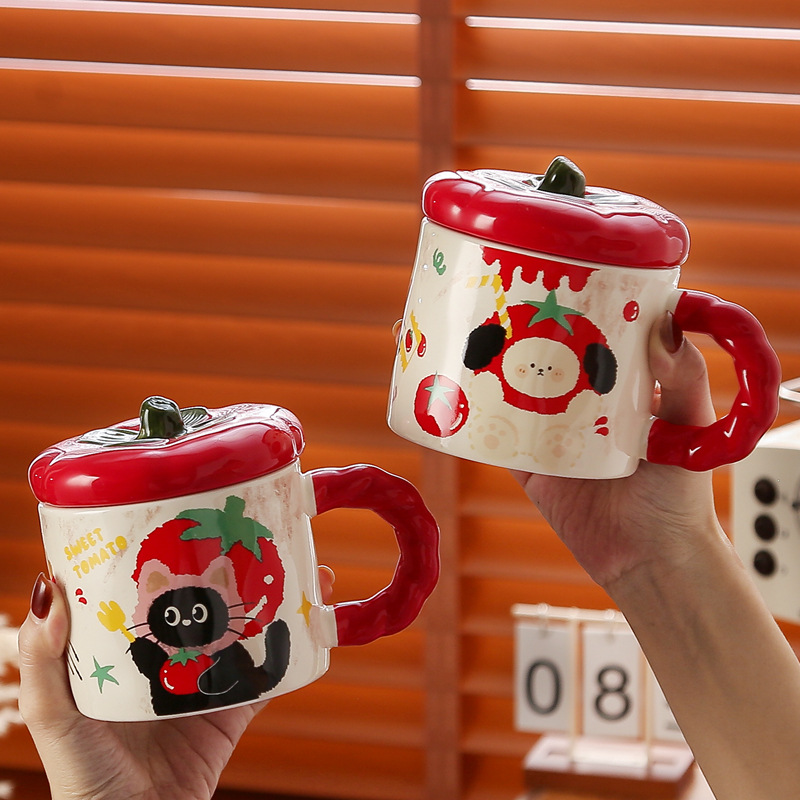 かわいい柿マグカップ蓋付き誕生日プレゼントプレゼントプレゼント高颜値コーヒーカップ家庭用女子セラミックカップ