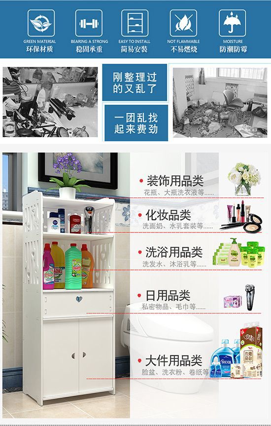 トイレの横に置く置物棚、床置き型、バルコニー、リビングルーム用防水収納棚、トイレの隙間やコーナーに置く棚