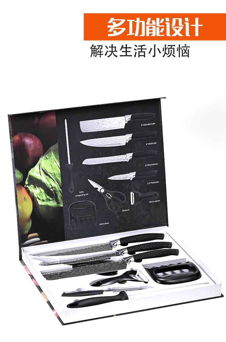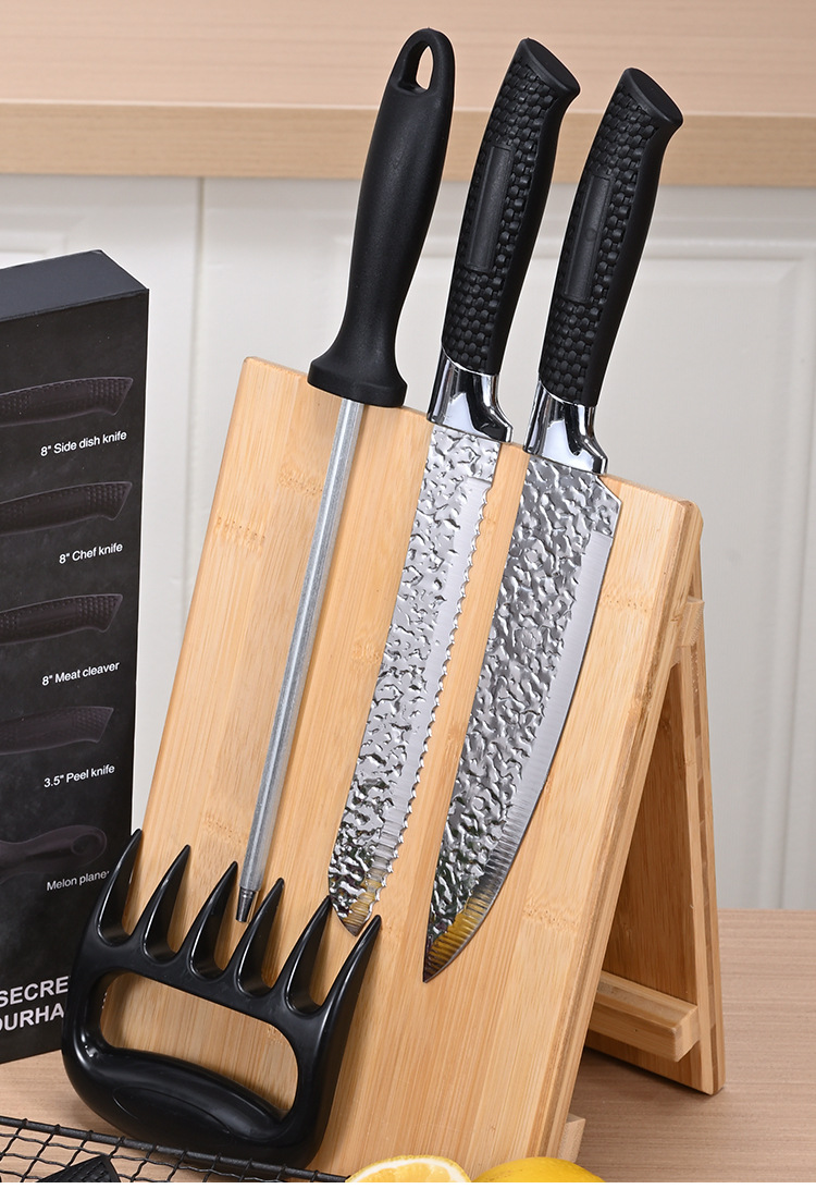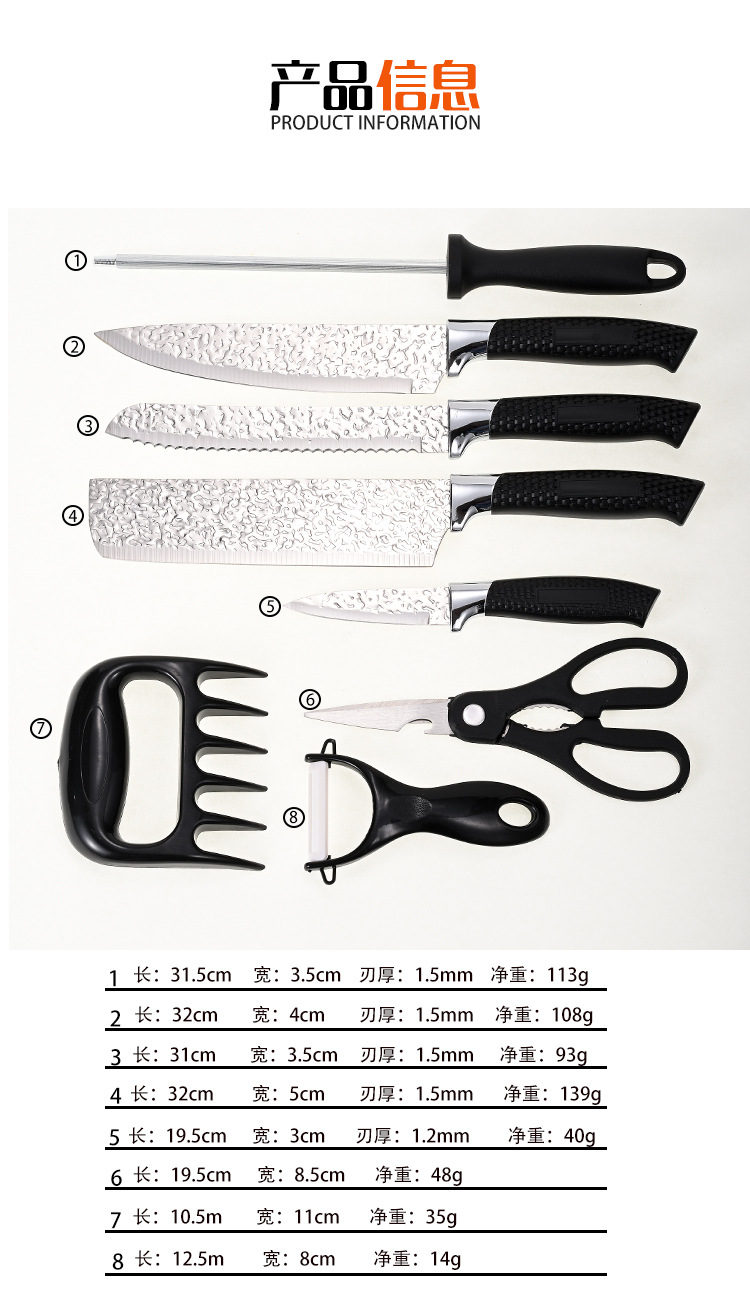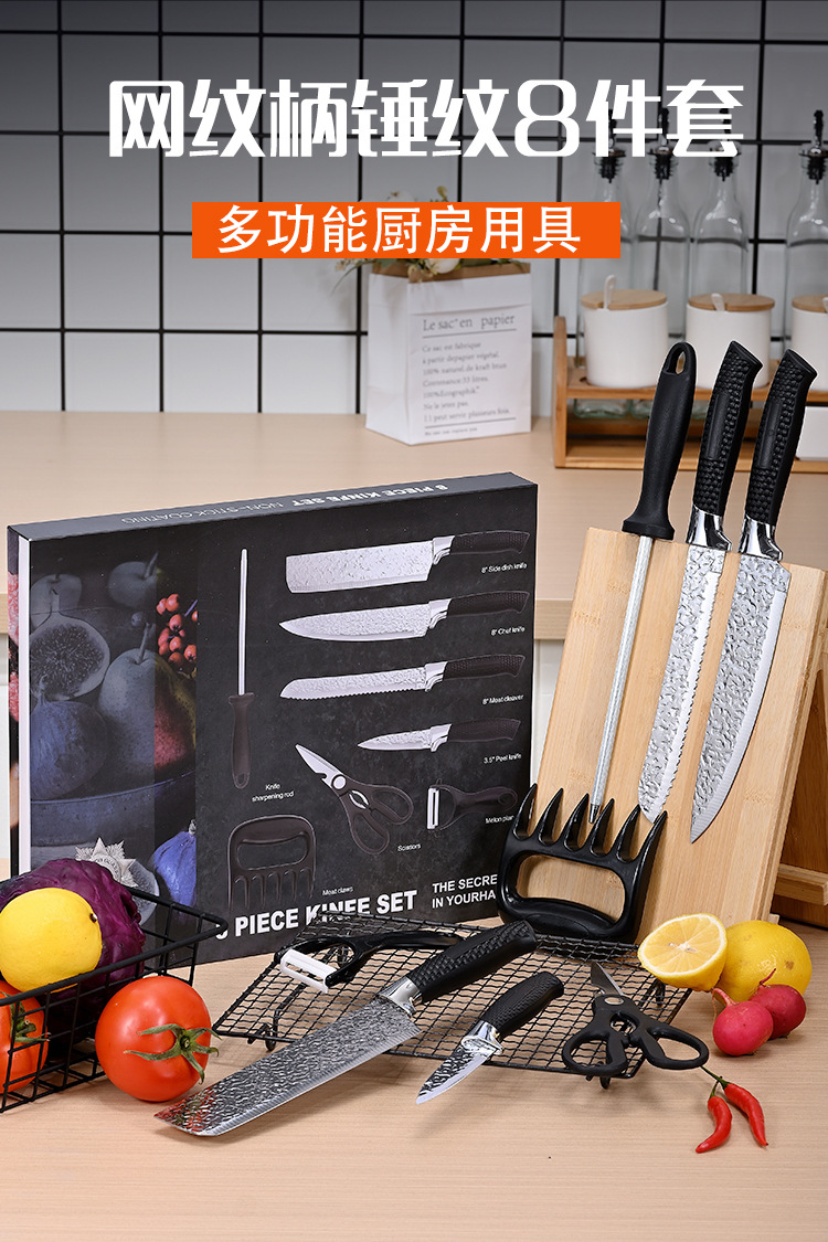 よく売れています。クロスボーダーの網紋の柄のハンマーの紋様の刀の調理器具の8セットの熊の爪の肉の器の刀のはさみの組み合わせの刃物のセットです。