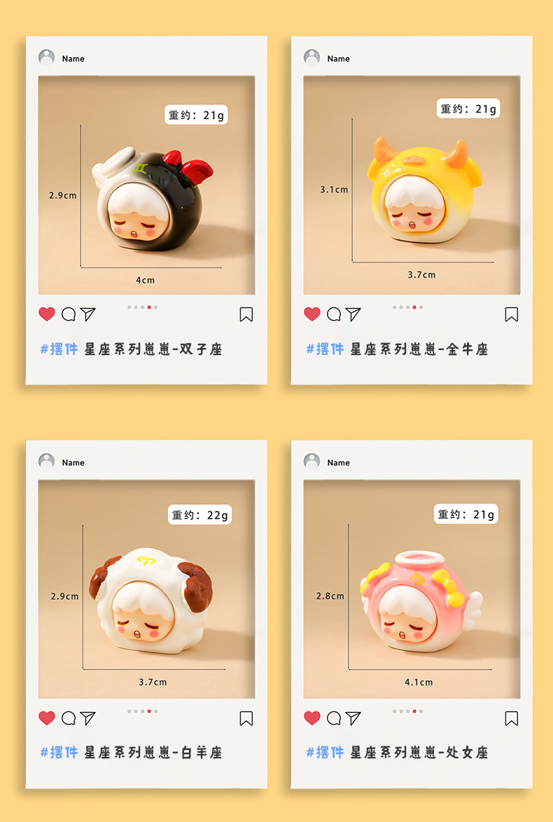 漫画十二星座妹萌粒公仔diyアクセサリー漫画オフィスデスクトップミニ置物