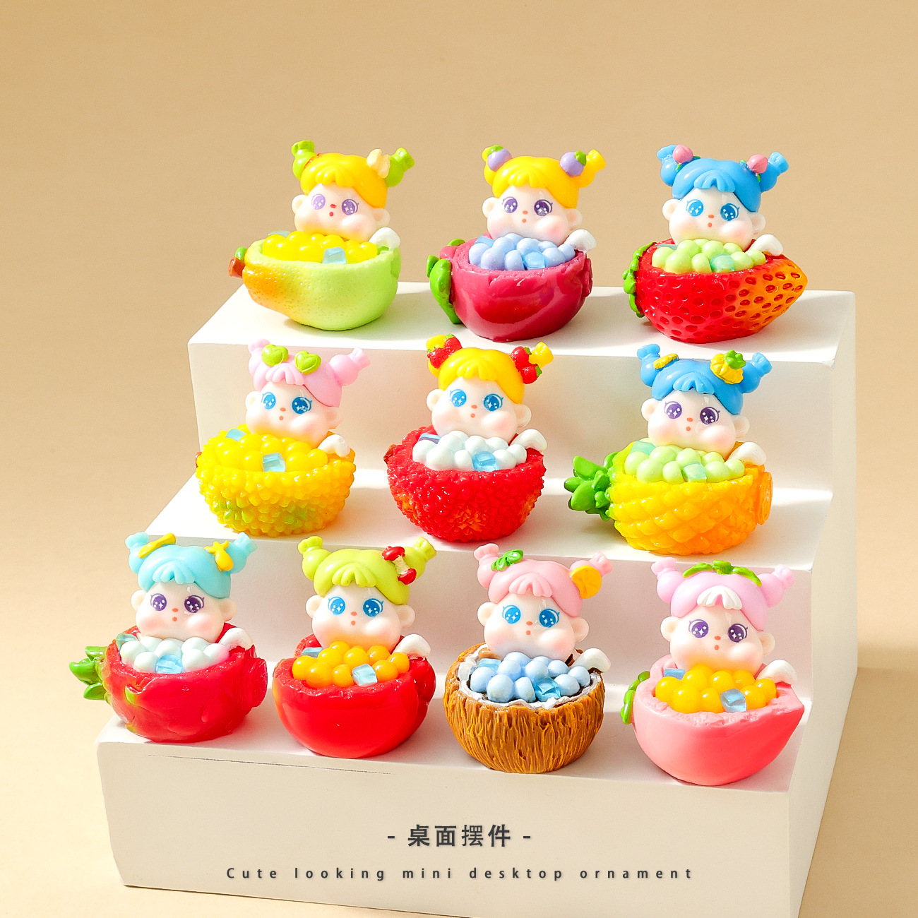 創意彩色絵果物すくいQQ女の子萌え粒公仔樹脂デスクトップ小置物生放送盲袋ブラインドケース卸売り