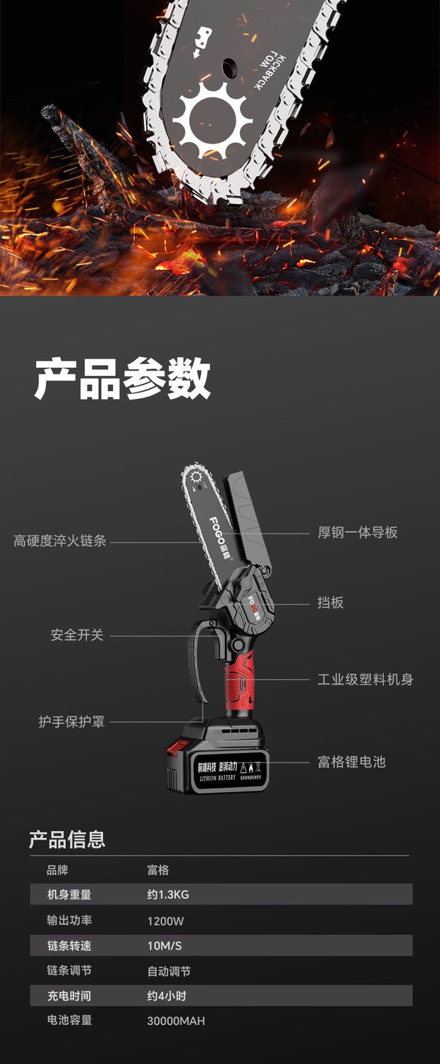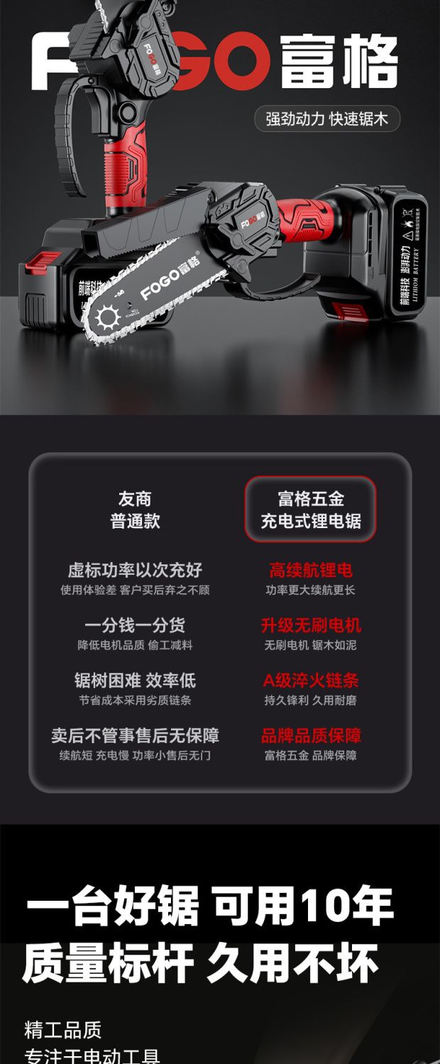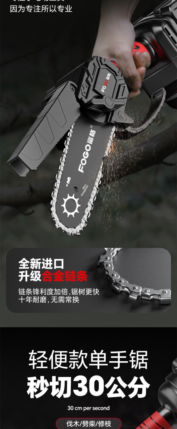 富格ブラシレス充電式リチウム電気片手チェーンソー家庭用小型手持ち鋸電動チェーンソー柴屋外伐採