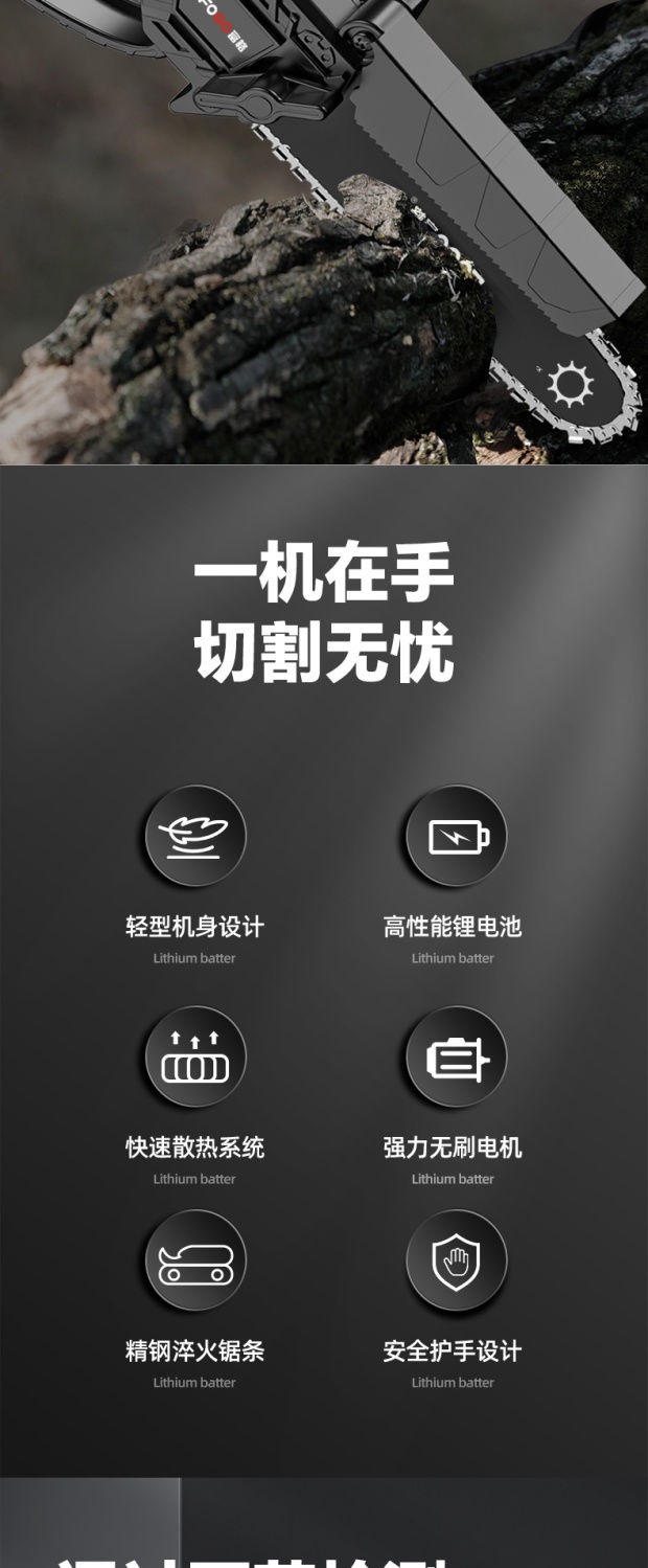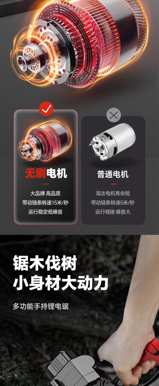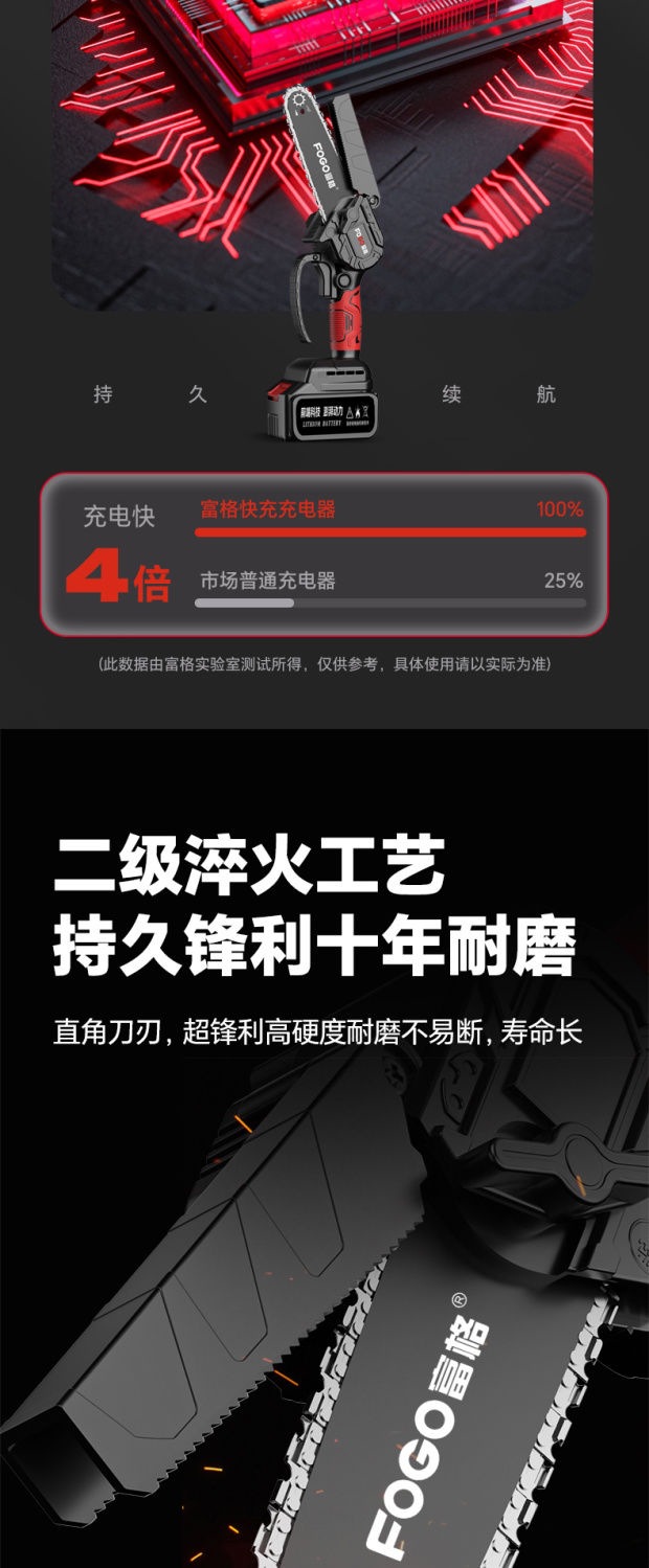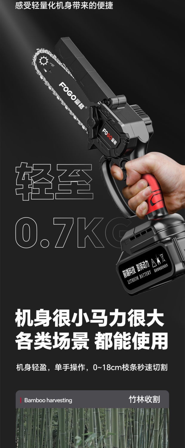 富格ブラシレス充電式リチウム電気片手チェーンソー家庭用小型手持ち鋸電動チェーンソー柴屋外伐採