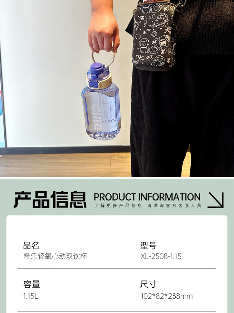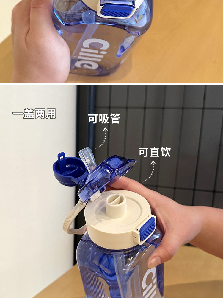希楽大容量学生杯男女高颜値tritanストローカップダブルドリンク携帯プラスチックスポーツ大水筒