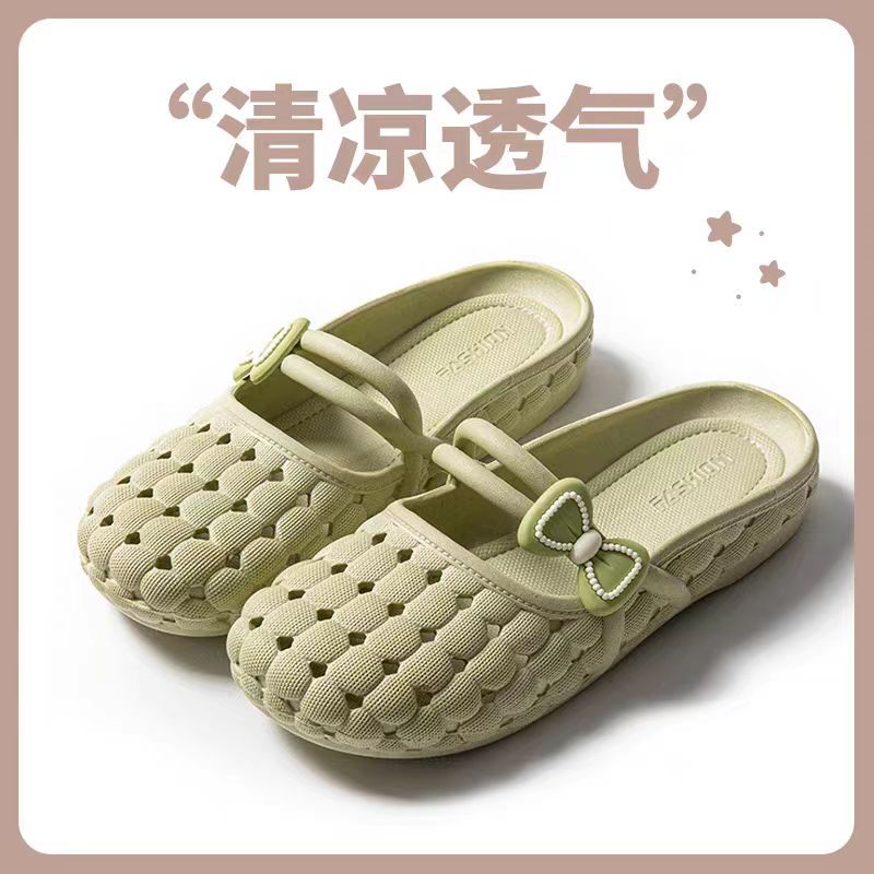 春夏用レディース洞洞シューズ、韓国風学生向け、自宅外履き、滑り止め、中空、通気性スリッパ、卸売、代発送、外履き可能