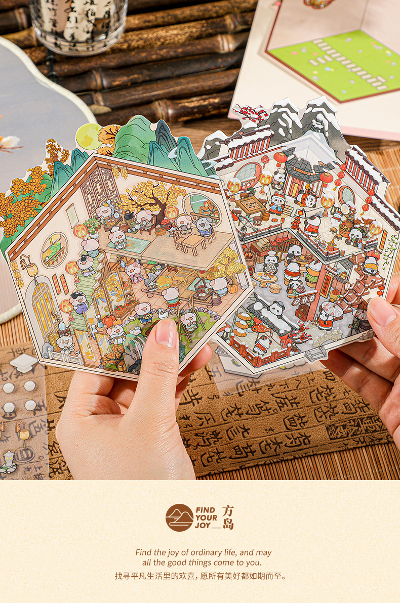 方島古風中国式3dミニチュア造景シール中国風創意趣味手作りDIYシール現物卸売り