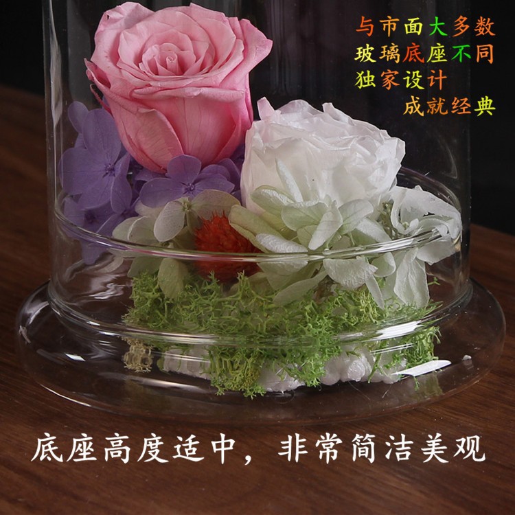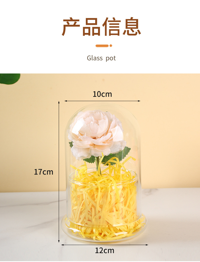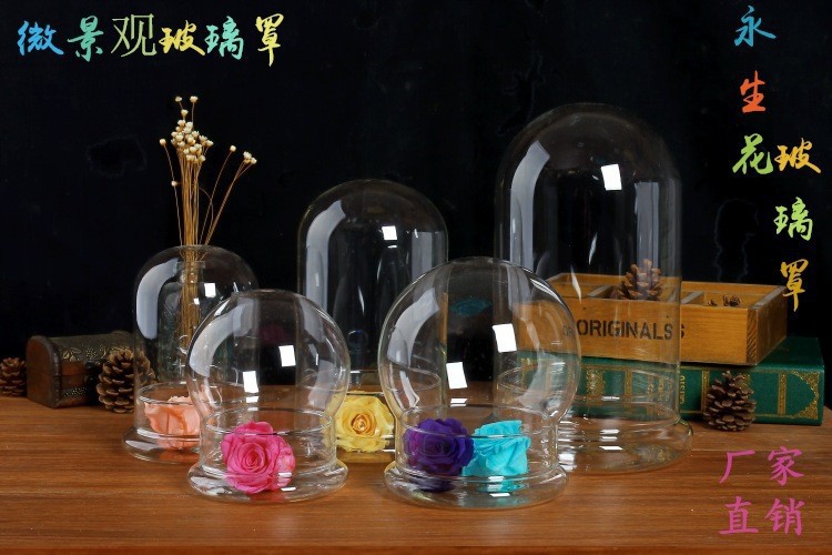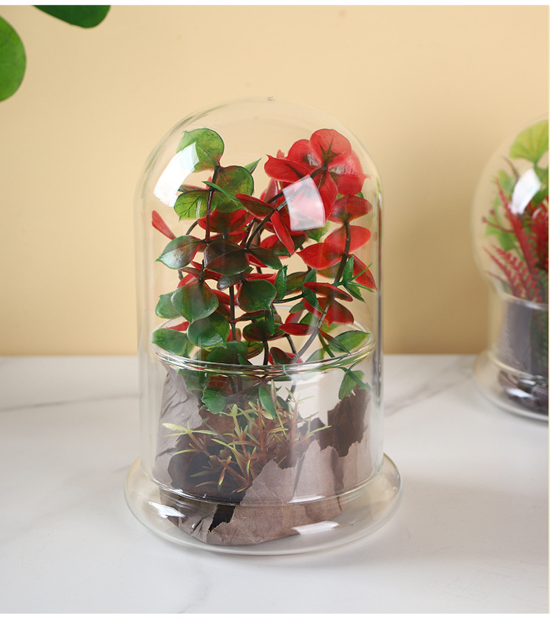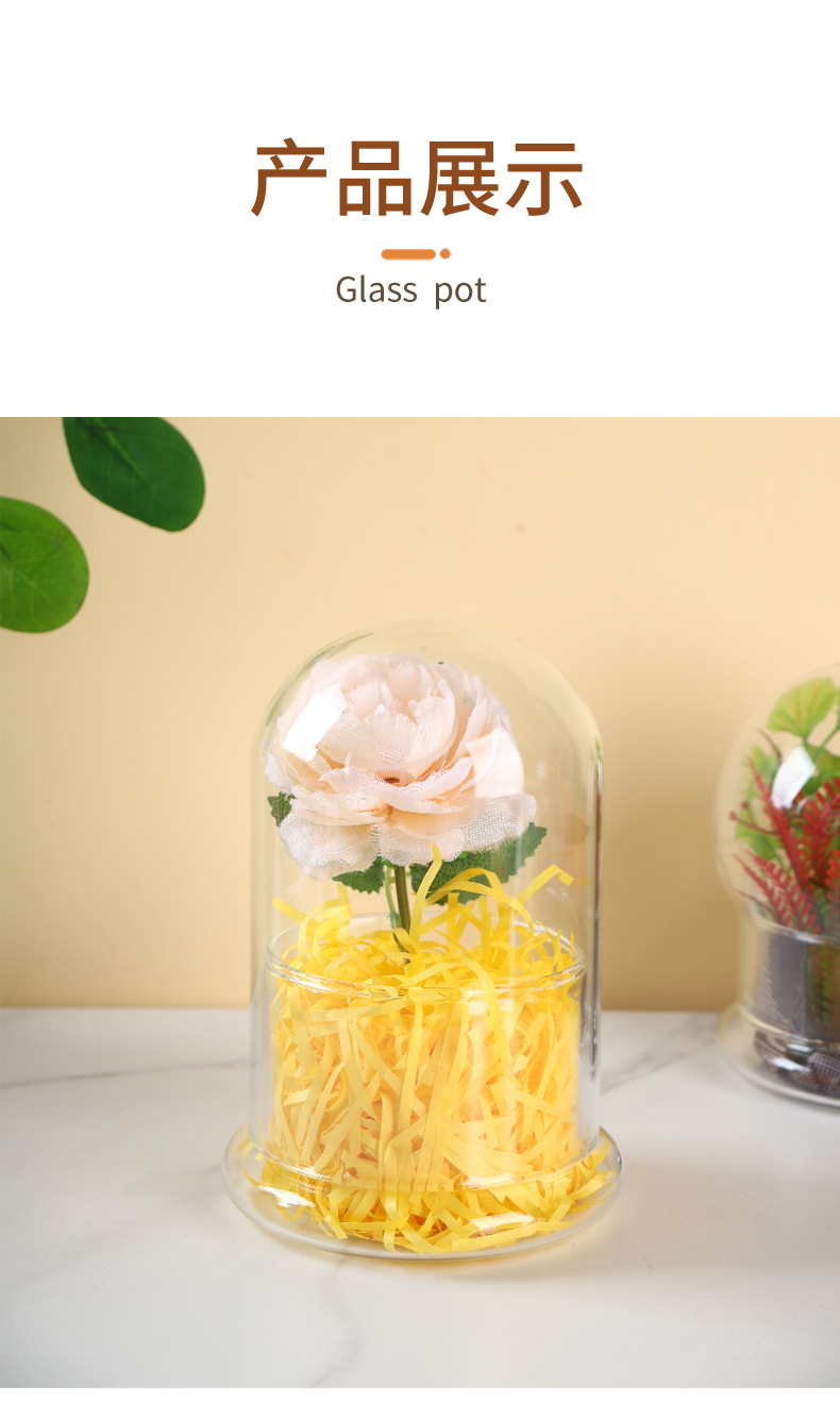 微景観透明ガラスカバー底セット分離式2合1防塵永生花コケ瓶植物デスクトップ置物
