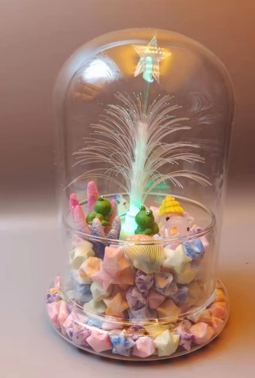ヨーロッパ式田園手弁小夜灯展示デスクトップ置物バレンタインデー誕生日プレゼント球形永生花ガラスカバー