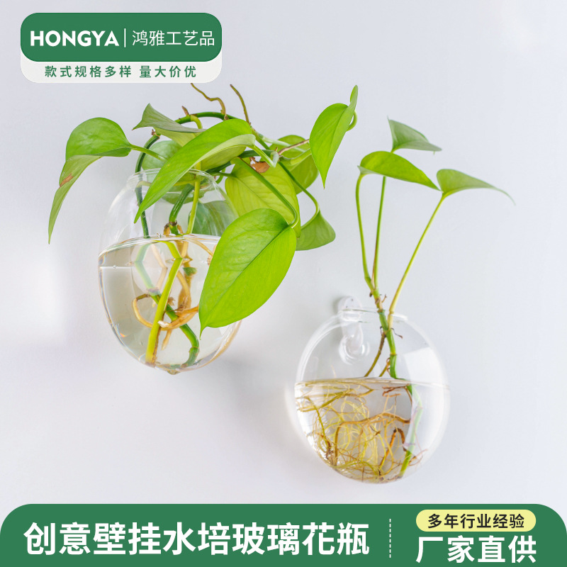 クリエイティブな壁掛け水耕栽培ガラス花瓶、緑の植物、家庭用壁掛け水耕栽培