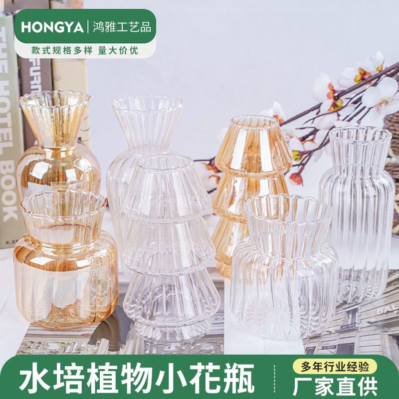 リビングルームのフラワーアレンジメント、北欧風ガラス花瓶、透明な水耕栽培、ストライプ柄、新鮮なドライフラワー装飾、メーカー卸売、家庭用