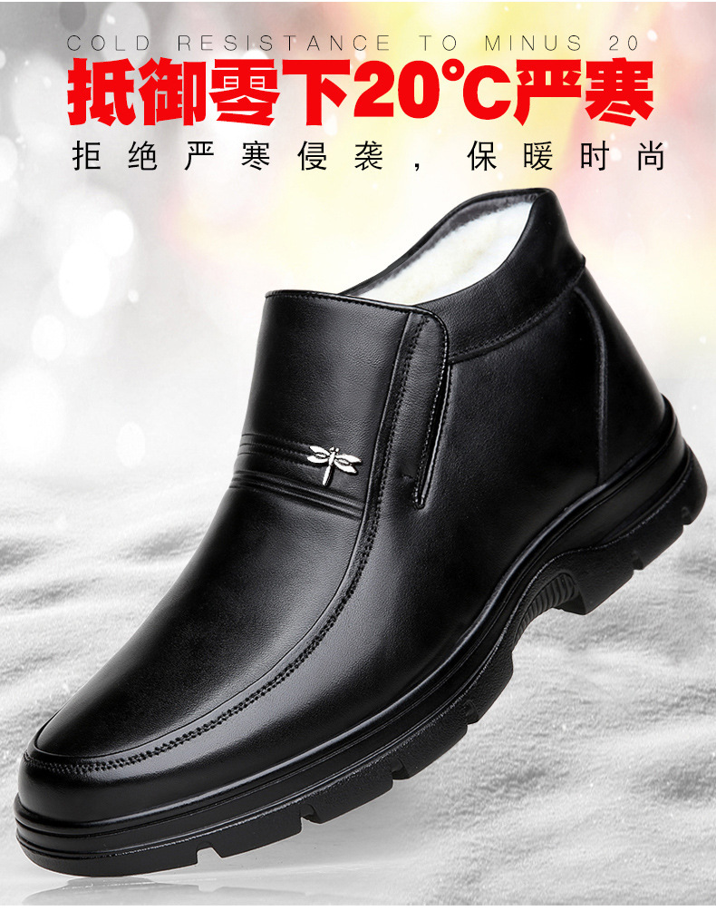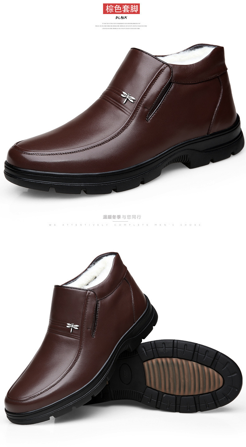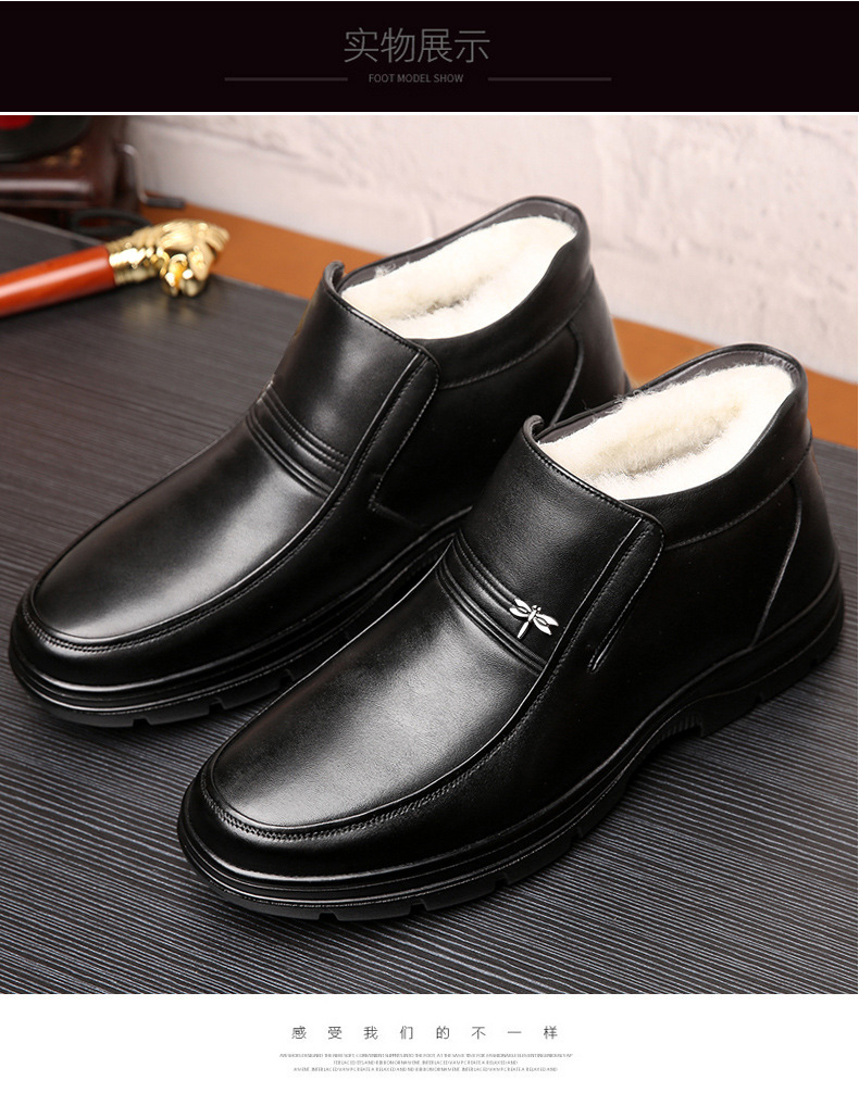 头层牛皮真皮棉鞋男鞋羊毛冬鞋加绒加厚保暖皮鞋老年爸爸防滑冬季