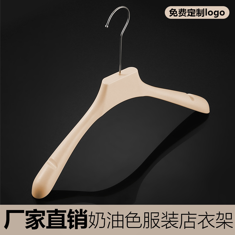 洋服店専用ハンガー実木米白乳白滑り止め無痕服ハンガー女装成人服サポートロゴ