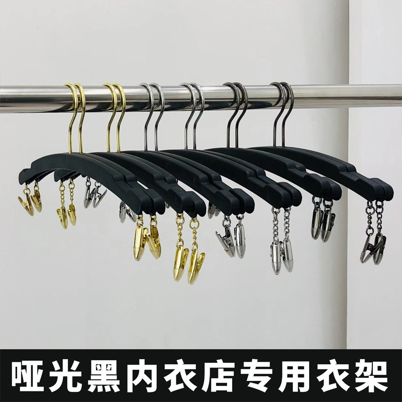 卸売りの下着の店のハンガーの黒色の下着のハンガーのクリップは展示棚のブラジャーのプラスチックの服を収納して掛けます。