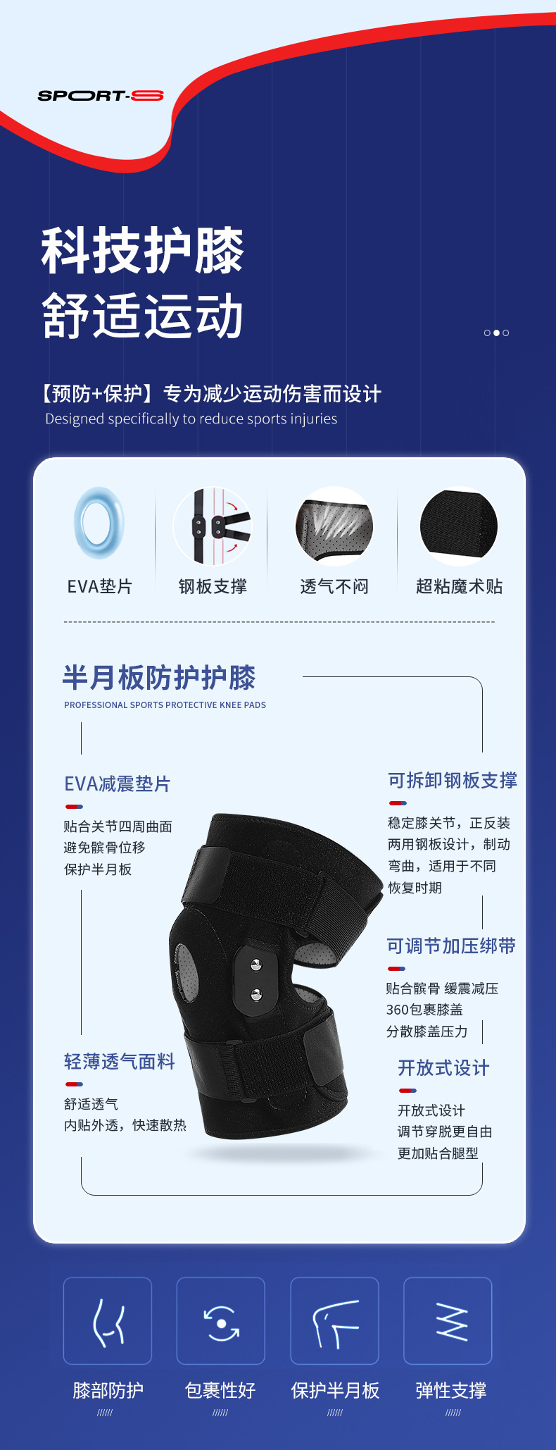 医療グレードのスポーツ膝関節スリーブブレース鋼板膝プロテクタースポーツプロテクター半月板特殊固定膝プロテクター