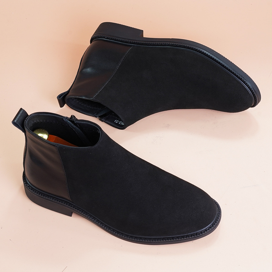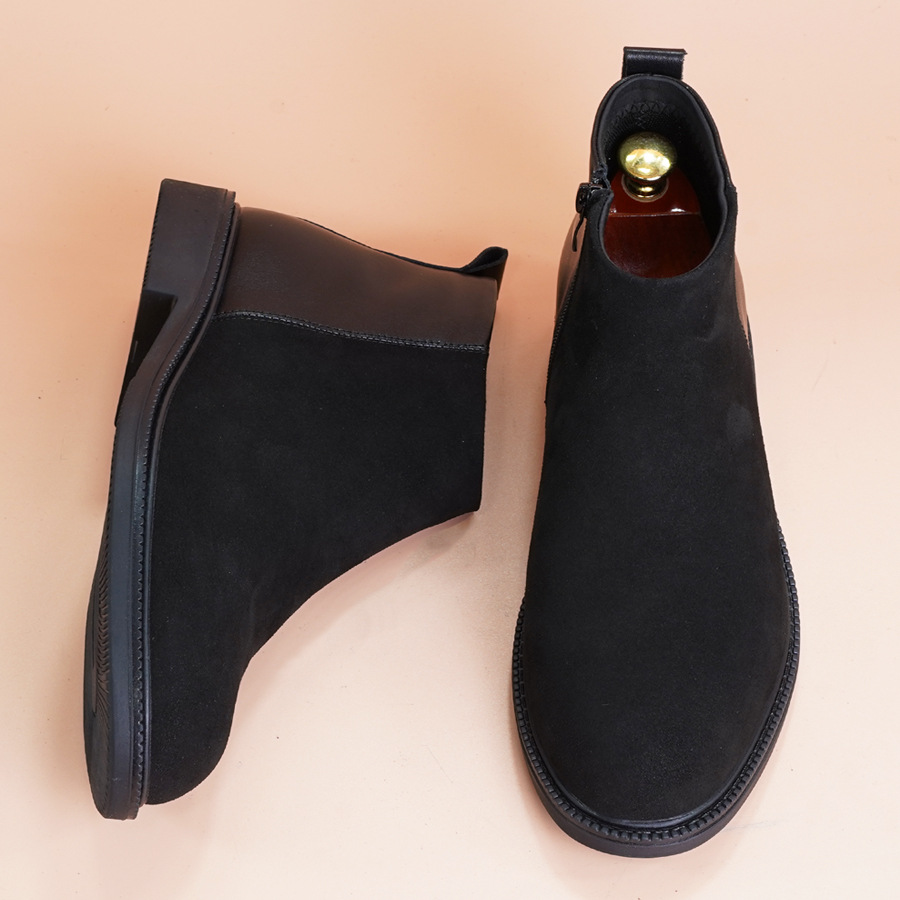 サイドジッパーマーティン靴男性ベルベット英倫真皮工装機関車靴冬が高くなった中でチェルシーのショートブーツを手伝った