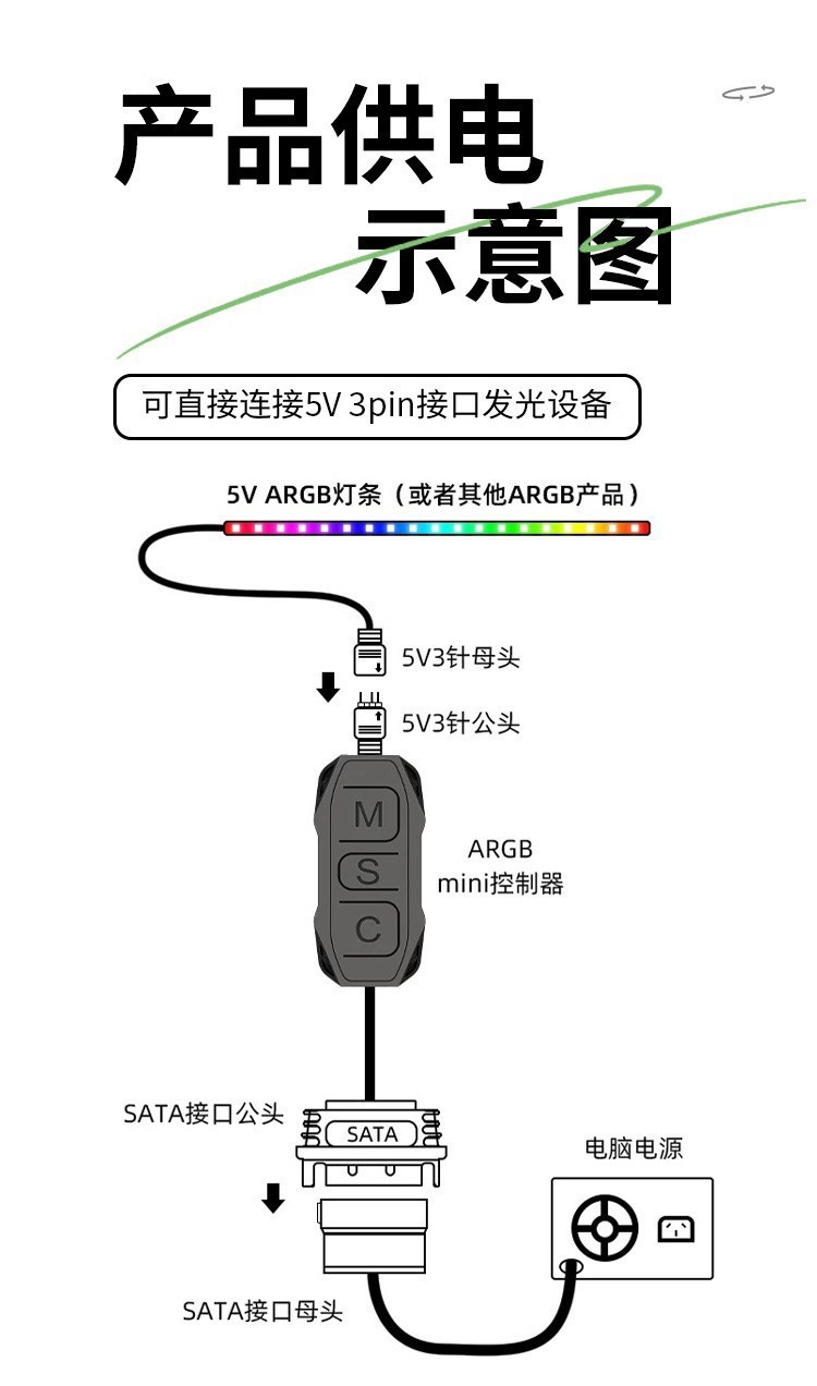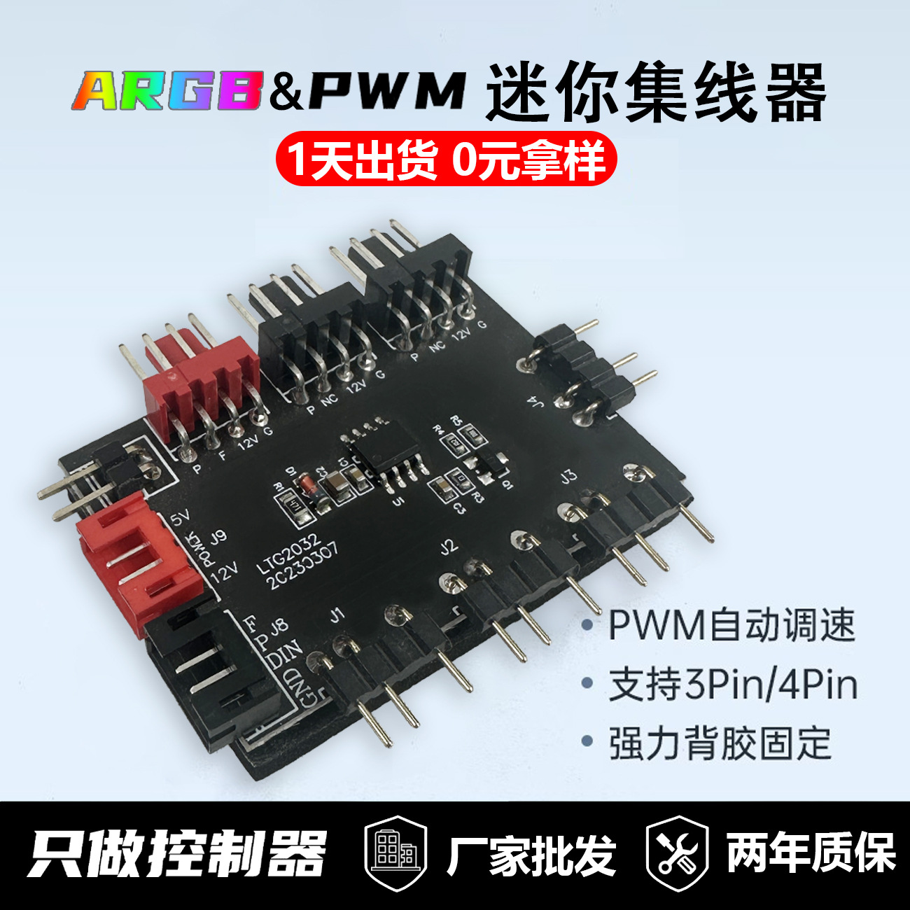 ARGB控制器5v3针神光同步PWM调速磁吸机箱通用主板棱镜风扇集线器