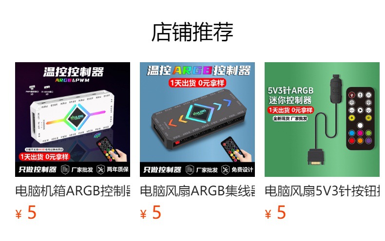 パソコンARGBコントローラ5V3針神光同期PWM温度制御調速無線リモコン筐体ファンハブ