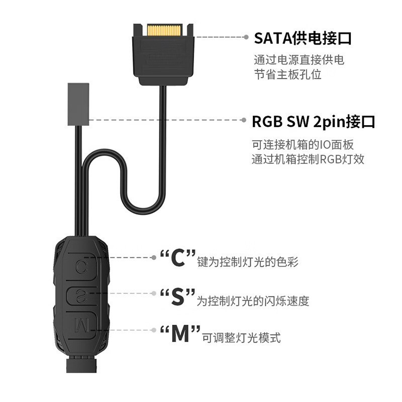 コンピュータシャーシのファンライトの配線5V3針神光同期SATA電源ARGBボタンコントローラ