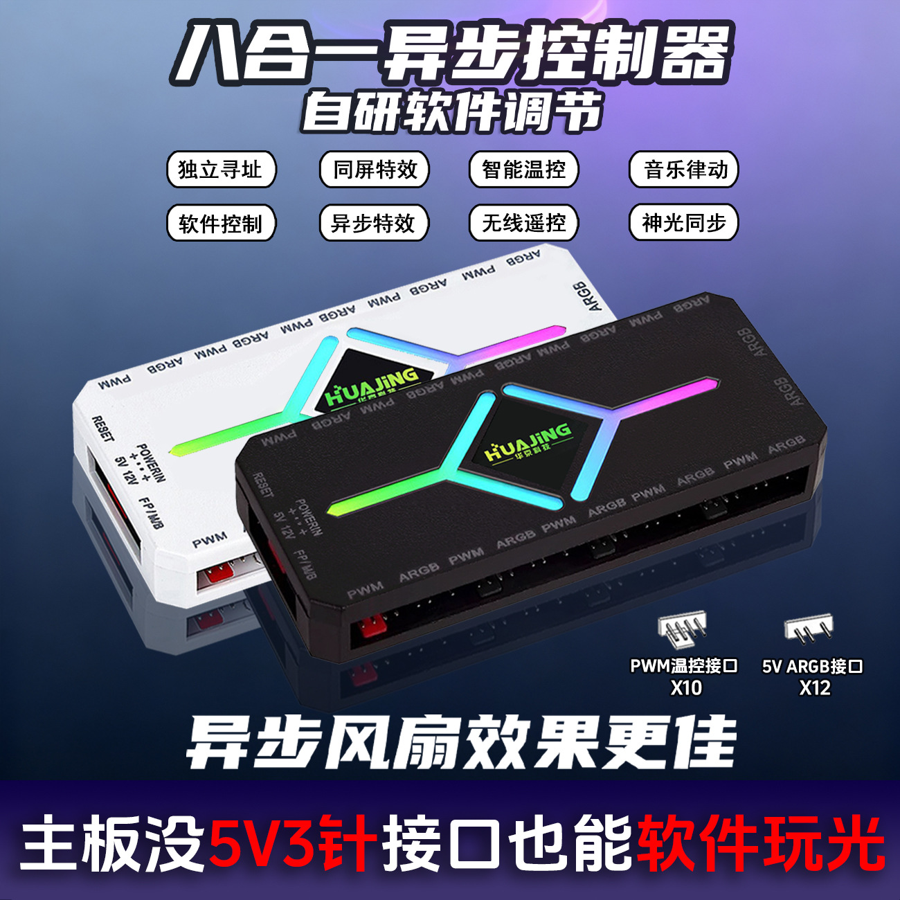 机箱异步ARGB控制器可寻址带软件5V3针PWM温控无线遥控风扇集线器