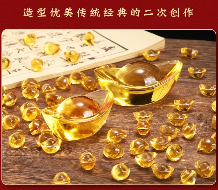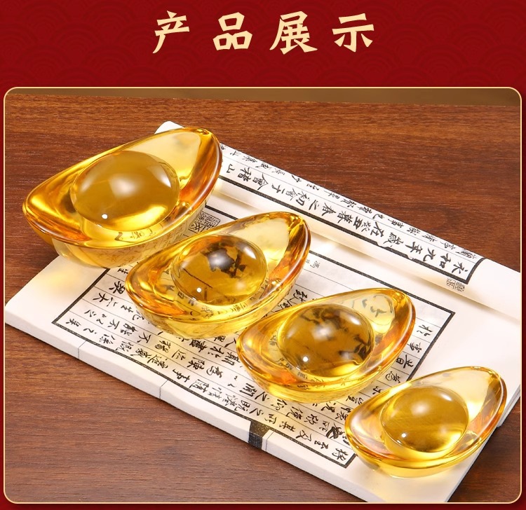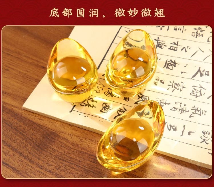 黄水晶元宝摆件小元宝琉璃金元宝招财聚宝盆碎石装饰乔迁礼品批发