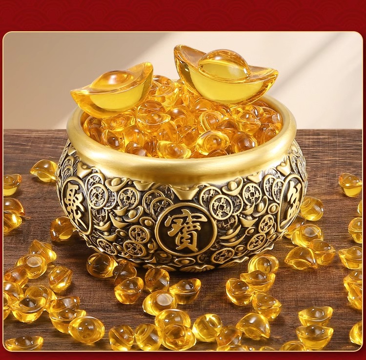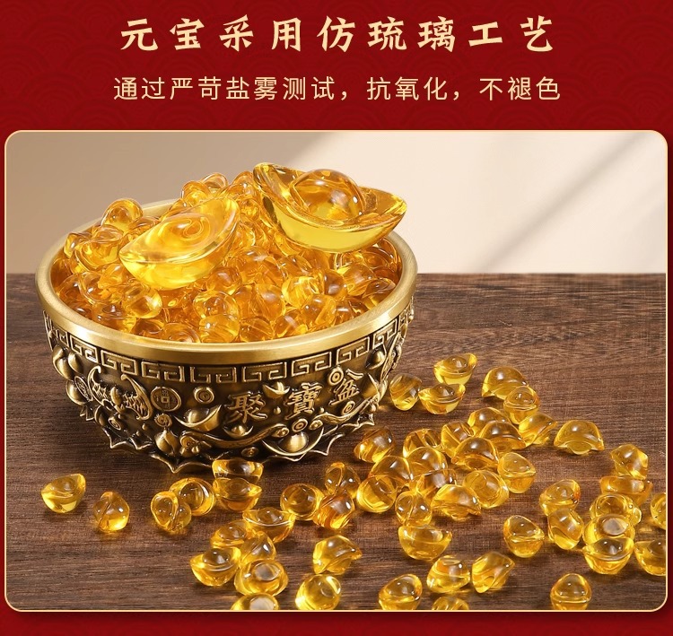 厂家直销黄色水晶金黄小元宝百福缸聚宝盆家居开业礼品装饰品摆件
