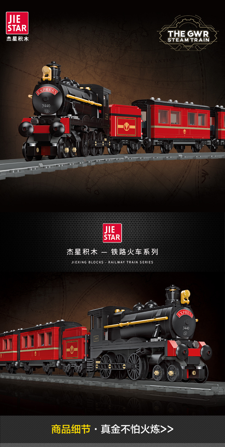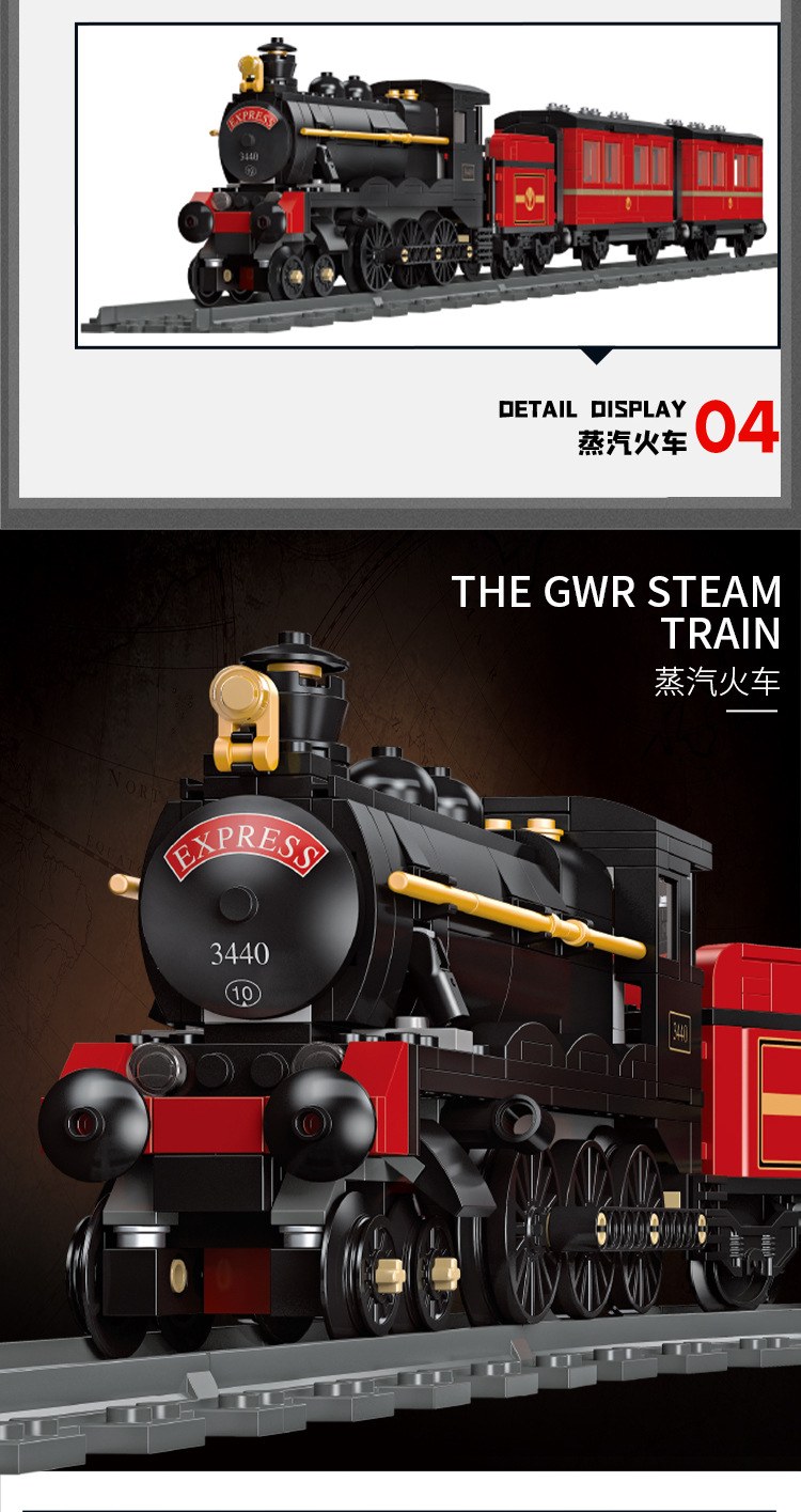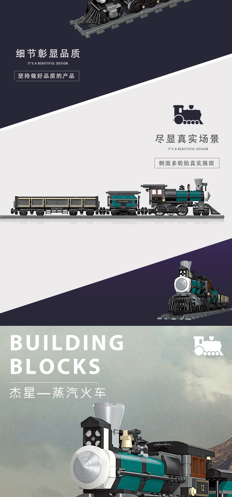 杰星59001复古蒸汽车仿真轨道火车电动模型摆件拼装积木跨境玩具