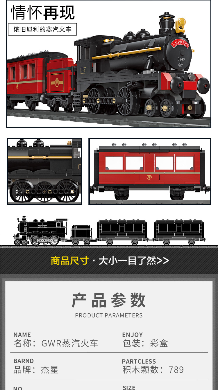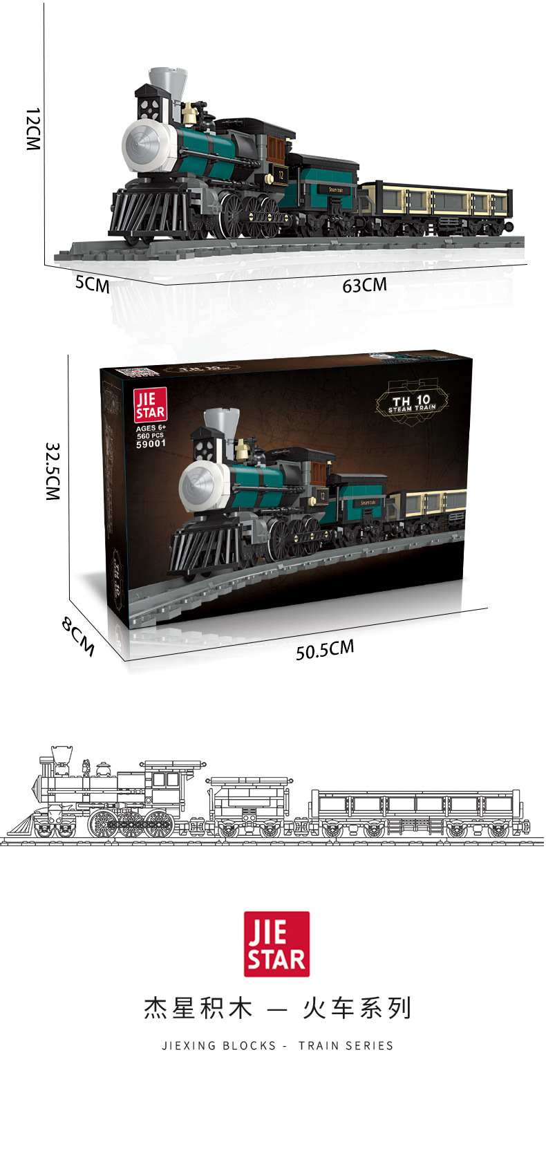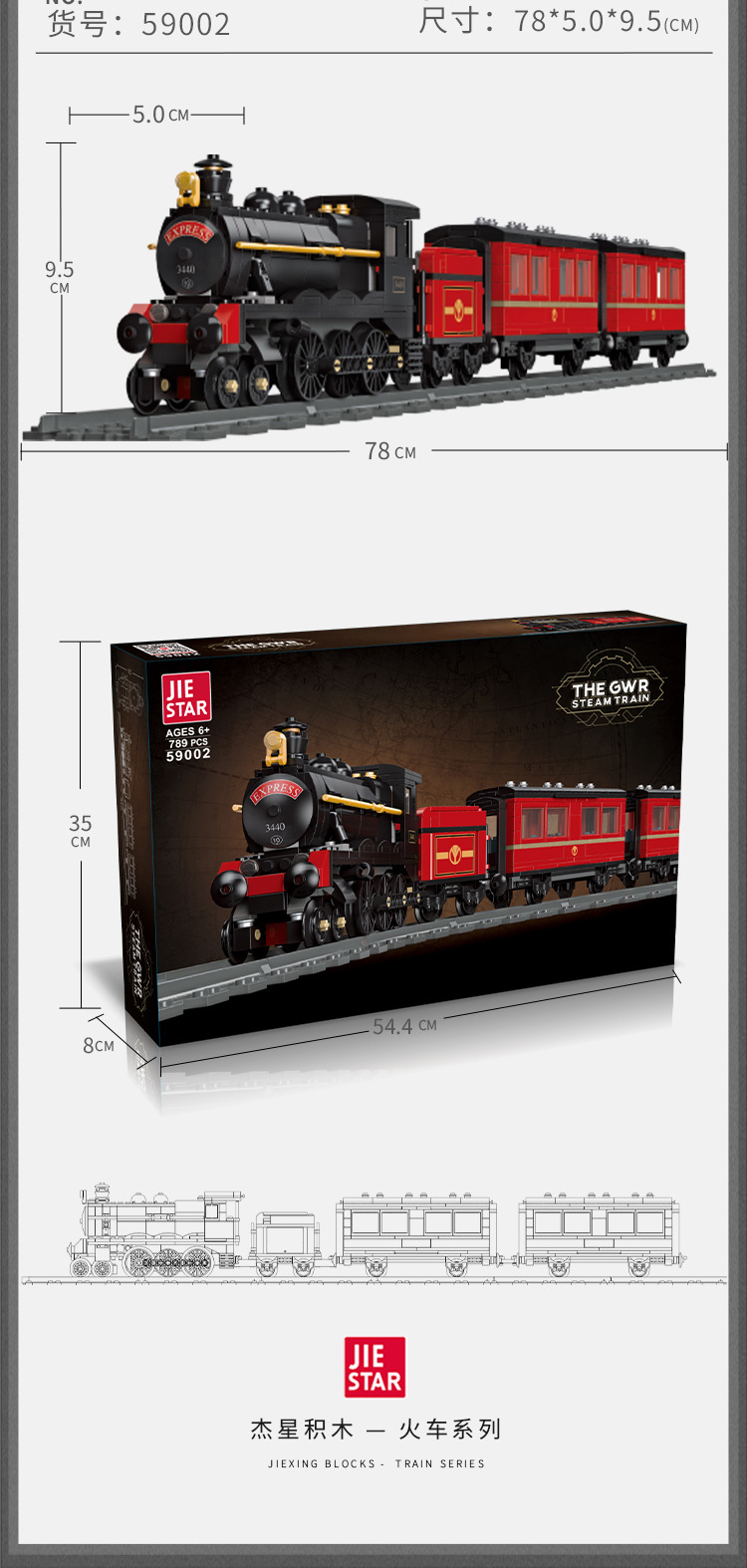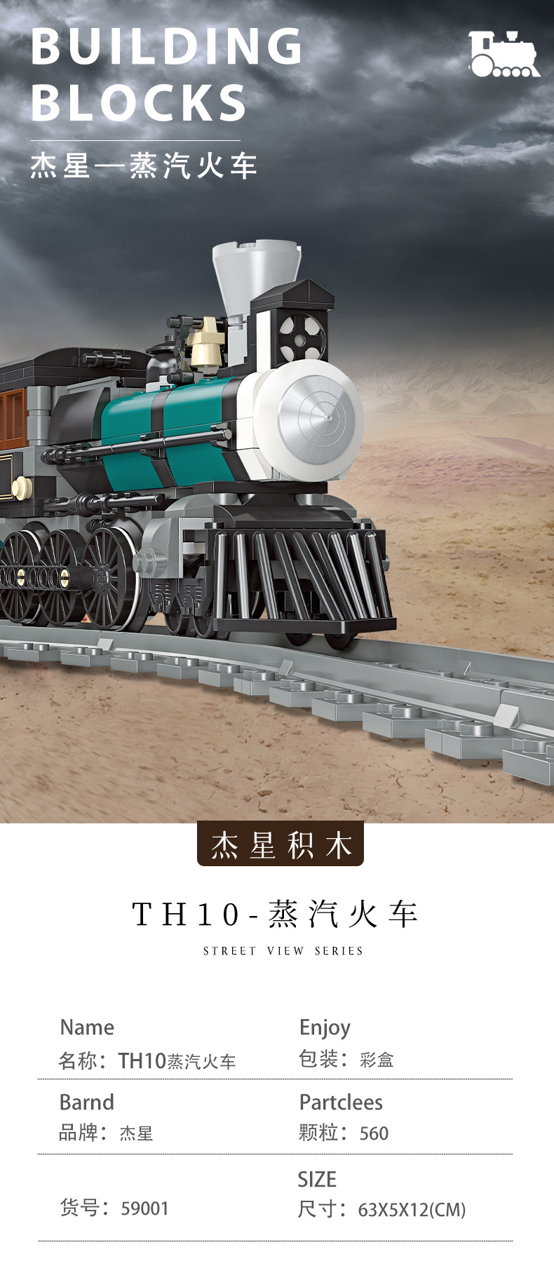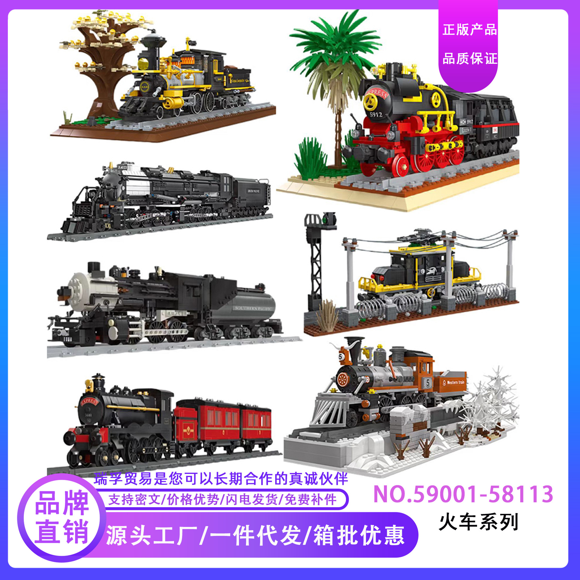 傑星59001蒸気汽車玩具59002列車軌道児童組立積み木レトロ自動車玩具