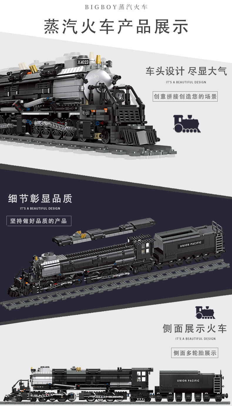 傑星59005BIGBOY蒸気機関車互換レゴ積み木小粒益智玩具クロスボーダー男
