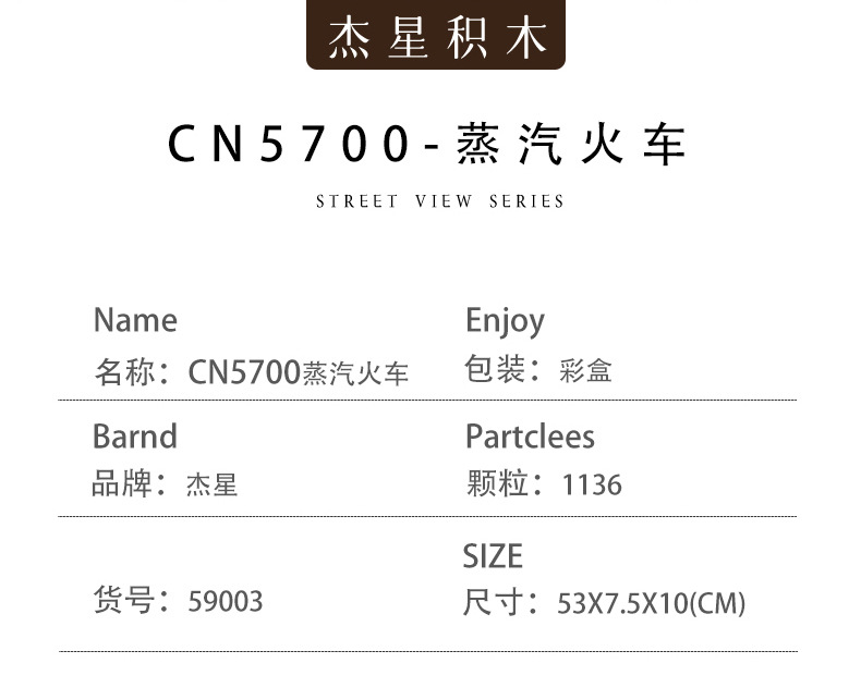 59005 蒸気機関車 [1608 ピース] 静的,59001 蒸気機関車 [560元] 静止,59002 蒸気機関車 [789元] 静止,59003 蒸気機関車 [1136 ピース] 静的,59004 蒸気機関車 [1173 ピース] 静的,59007 クロコダイルバイク [669元],59008 蒸気機関車 [676個] 静的,59010 ジェノヴァ 4-4-0 機関車 [950元] 静止,59021 蒸気機関車 [808個],98219 東風5型ディーゼル [1080元] 電気,98220 東風11Z形ディーゼル機関車 [1247個] 電動,98223 天吉高速列車 [1287元] 電気,98227 ハーモニー高速鉄道 [474元] 電気,98228 復興金鳳凰列車 [647元] 電気,98229 復興紅金龍列車 [647元] 電気,98252 大陸間弾道ミサイル列車 [1174 ピース] 電動,98253 鉄道線路敷設機 [1270個] 電動