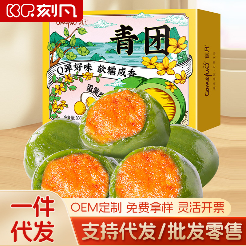 ヨモギグリーン団子在庫卸売おばあちゃんの卵黄とミートフロス風味もちもち団子中華菓子清明節フルーツ