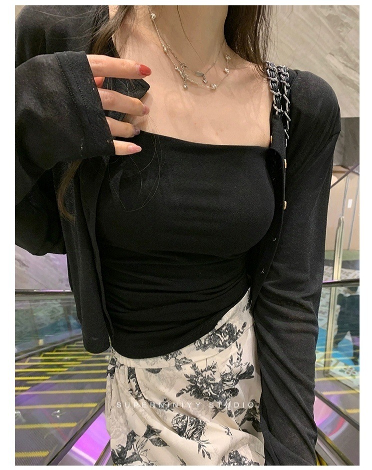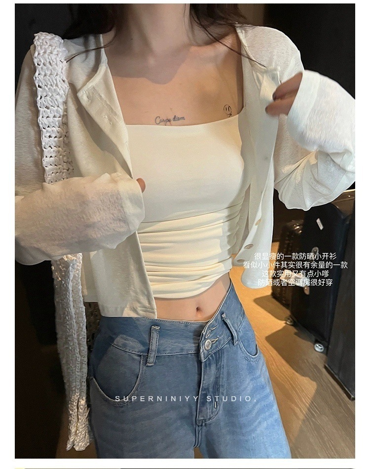 韩系蝶結びギャル美背下着胸パッド付きブロードベストの外着に純欲風露背上着を着ている女性