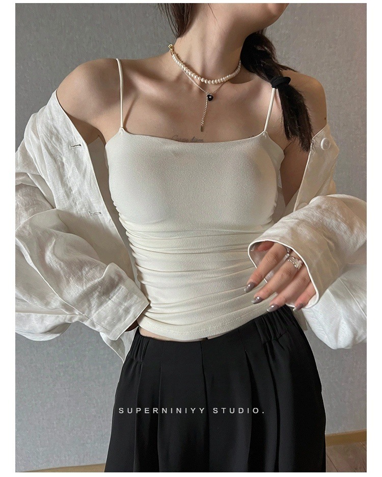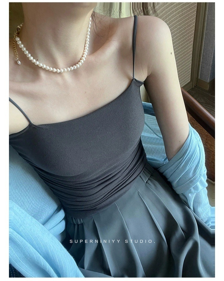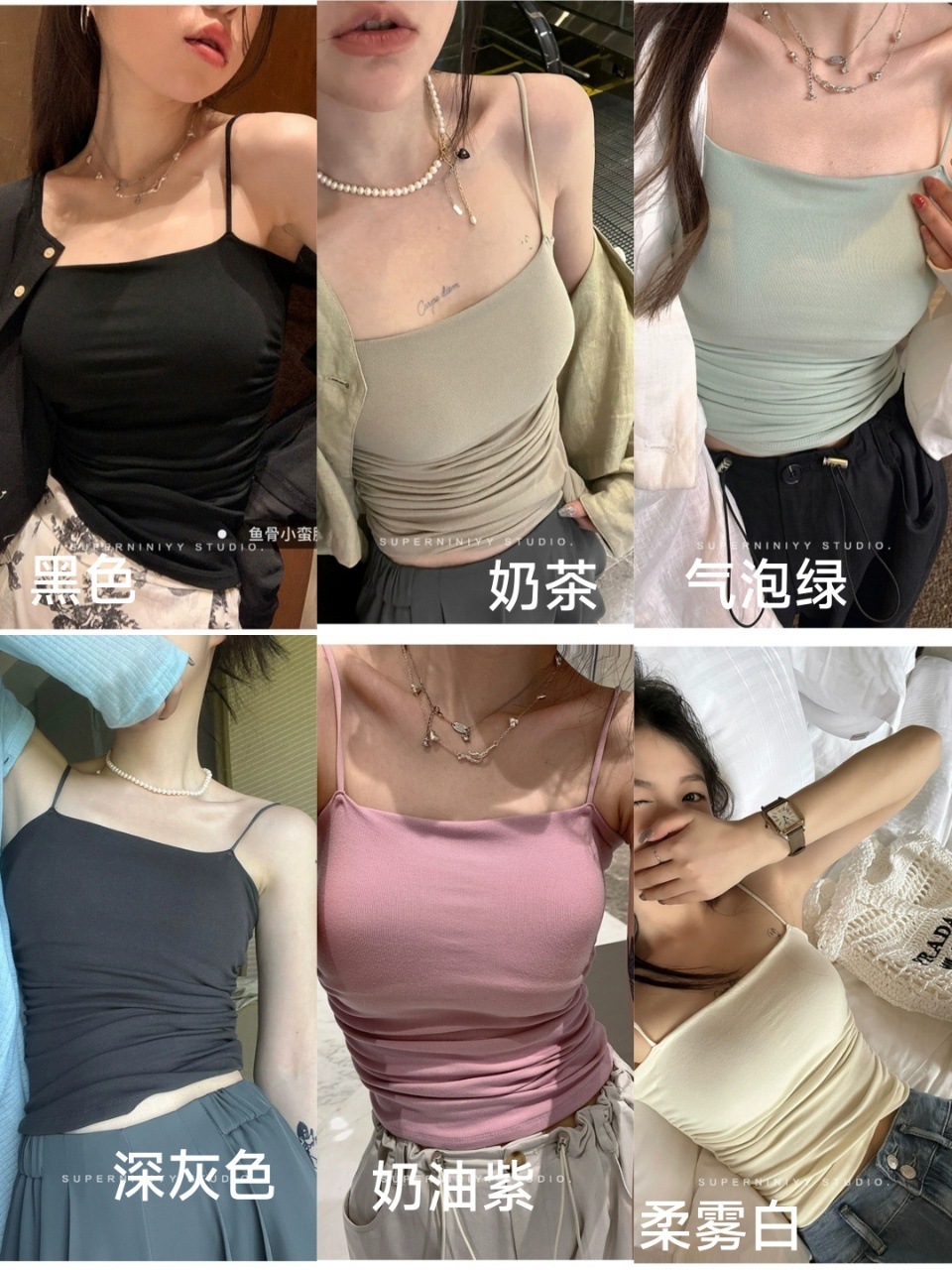 美しいバッククロスサスペンダーホットガールベスト女性のための 2025 新しいアウターウェア胸パッドとインナーウェア痩身ボトミングチューブトップ夏