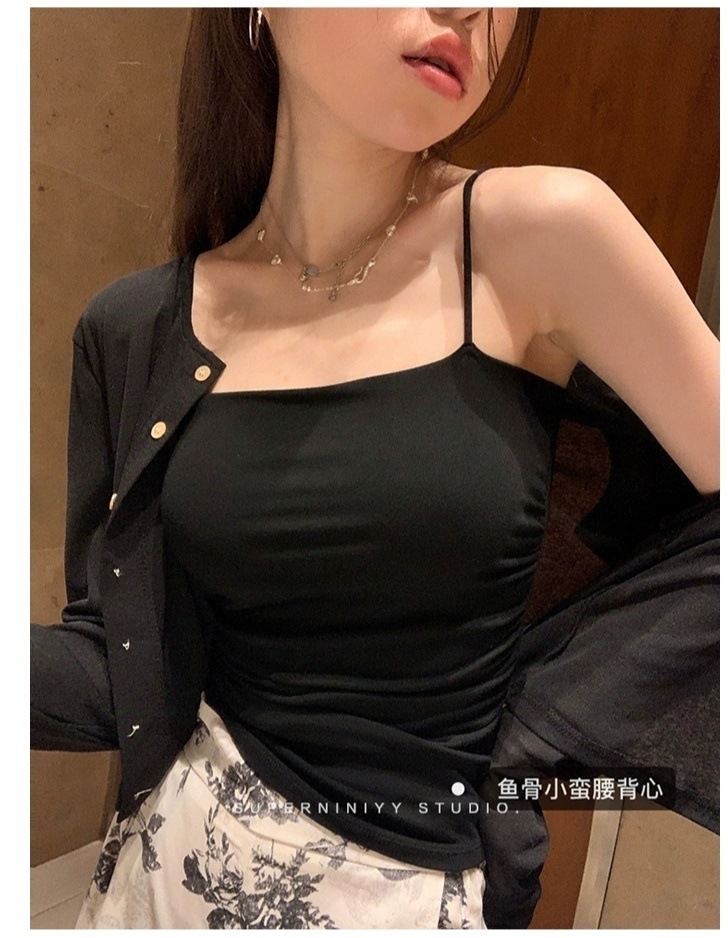 秋冬213 # 磨毛保温ストラップベスト一体式胸パッドしわスリムフィット